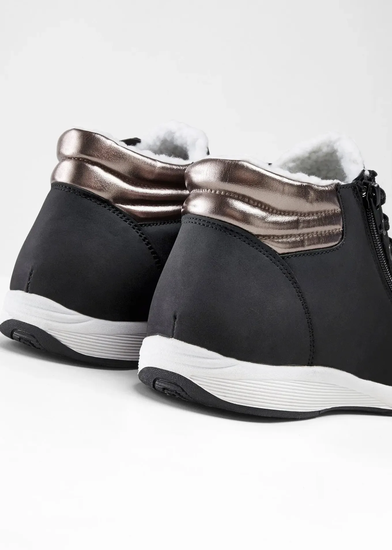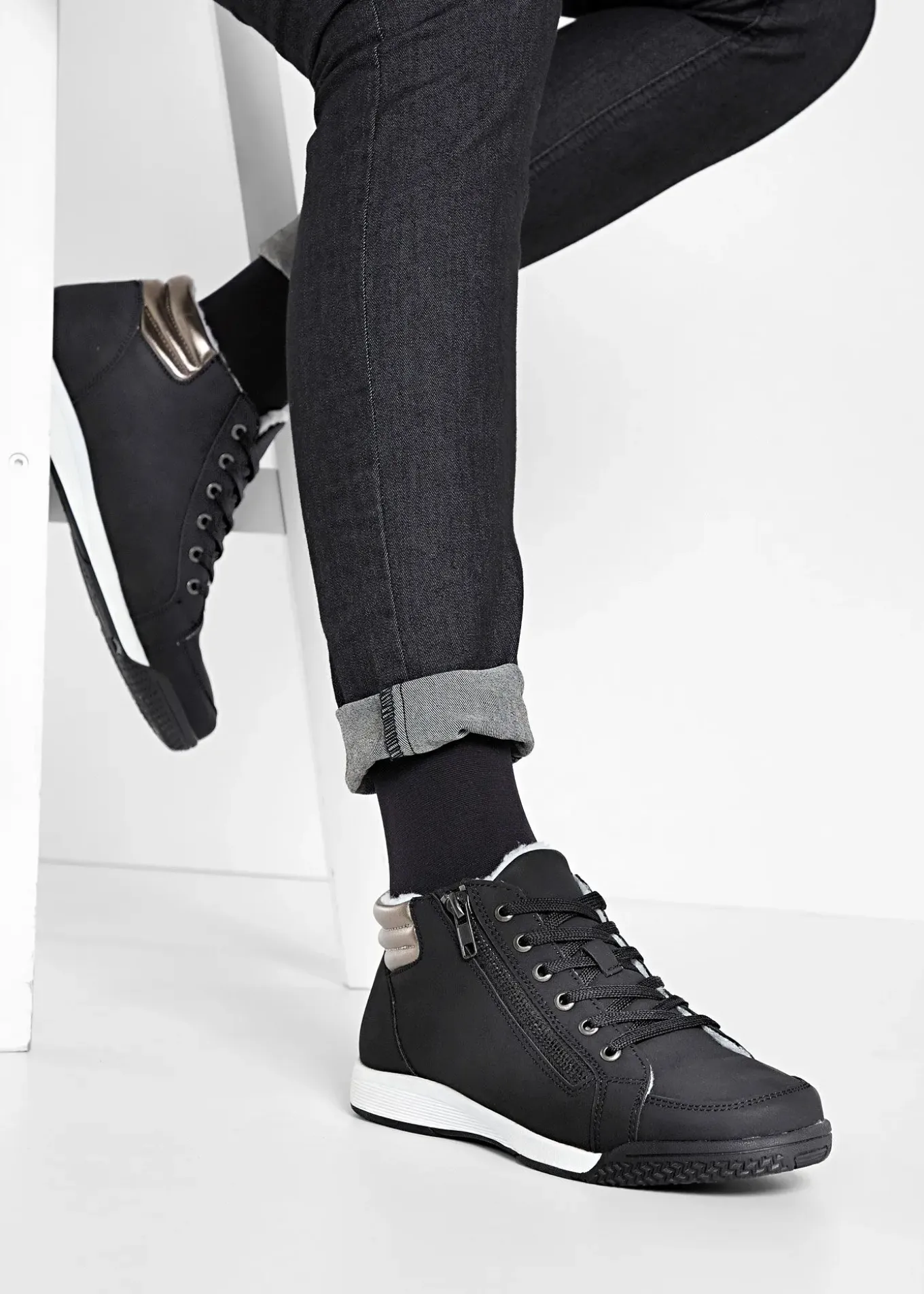 Le mélange de matière est l’atout mode de ces sneakers hautes, un modèle must-have pour finaliser chaque tenue.