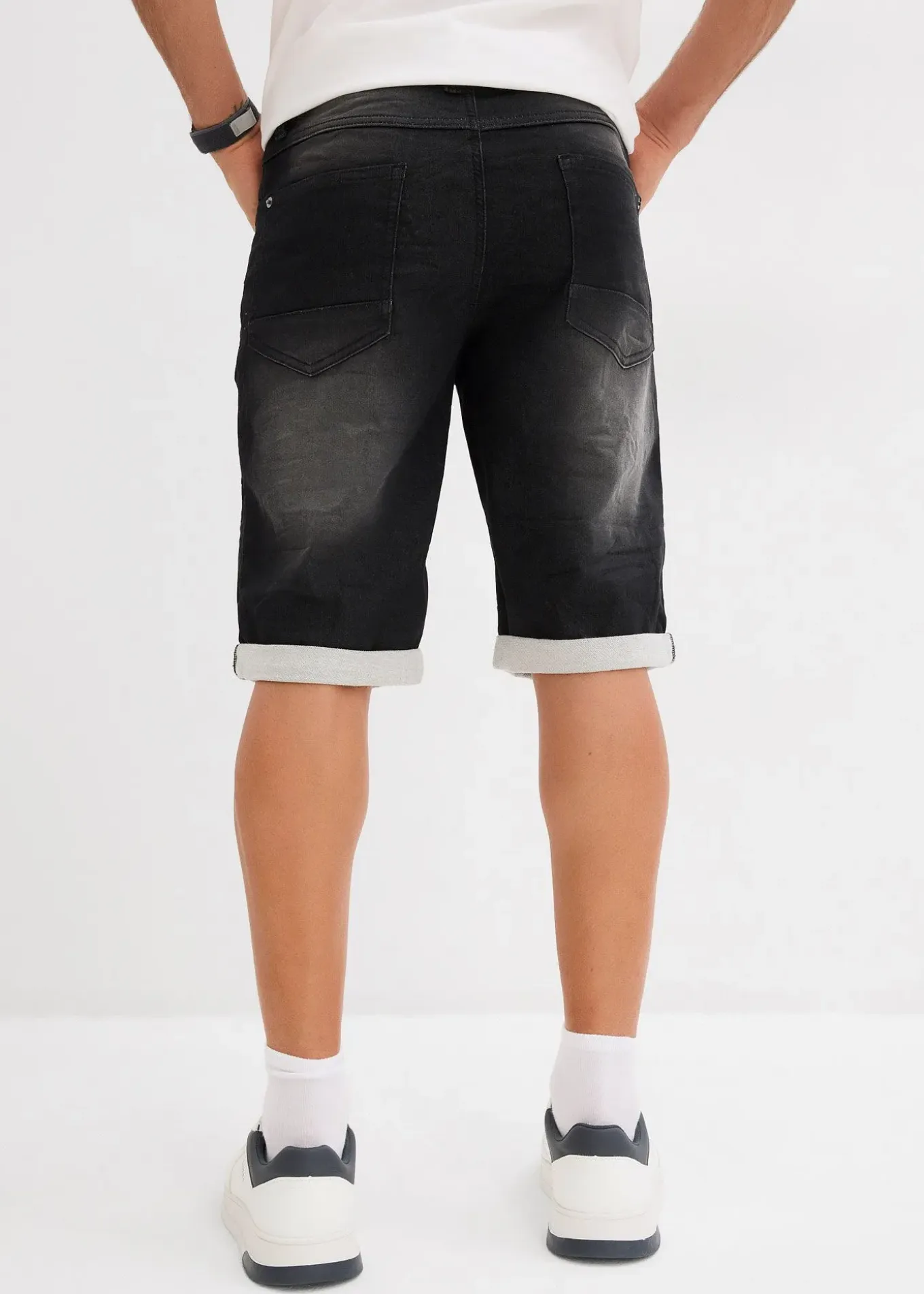 Bermuda ample en molleton, effet jean usé tendance