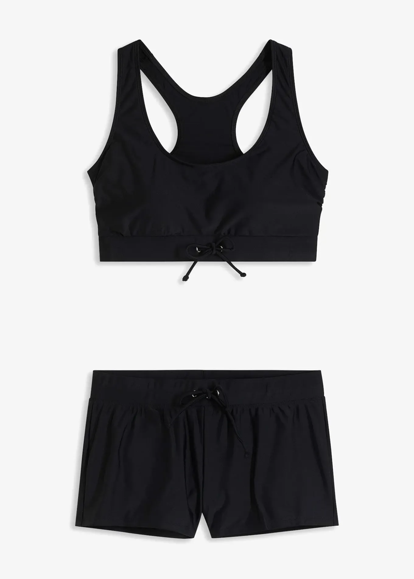 Dos nageur. Doublure poitrine et bande élastique sous poitrine. Coques souples intégrées.