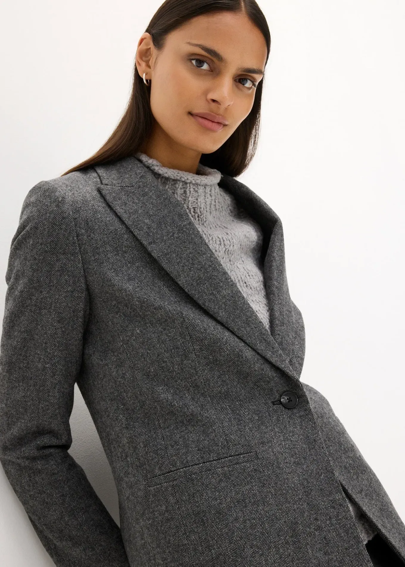 Dessus: 54% laine, 46% polyester recyclé, Doublure: 55% polyester recyclé, 45% viscose