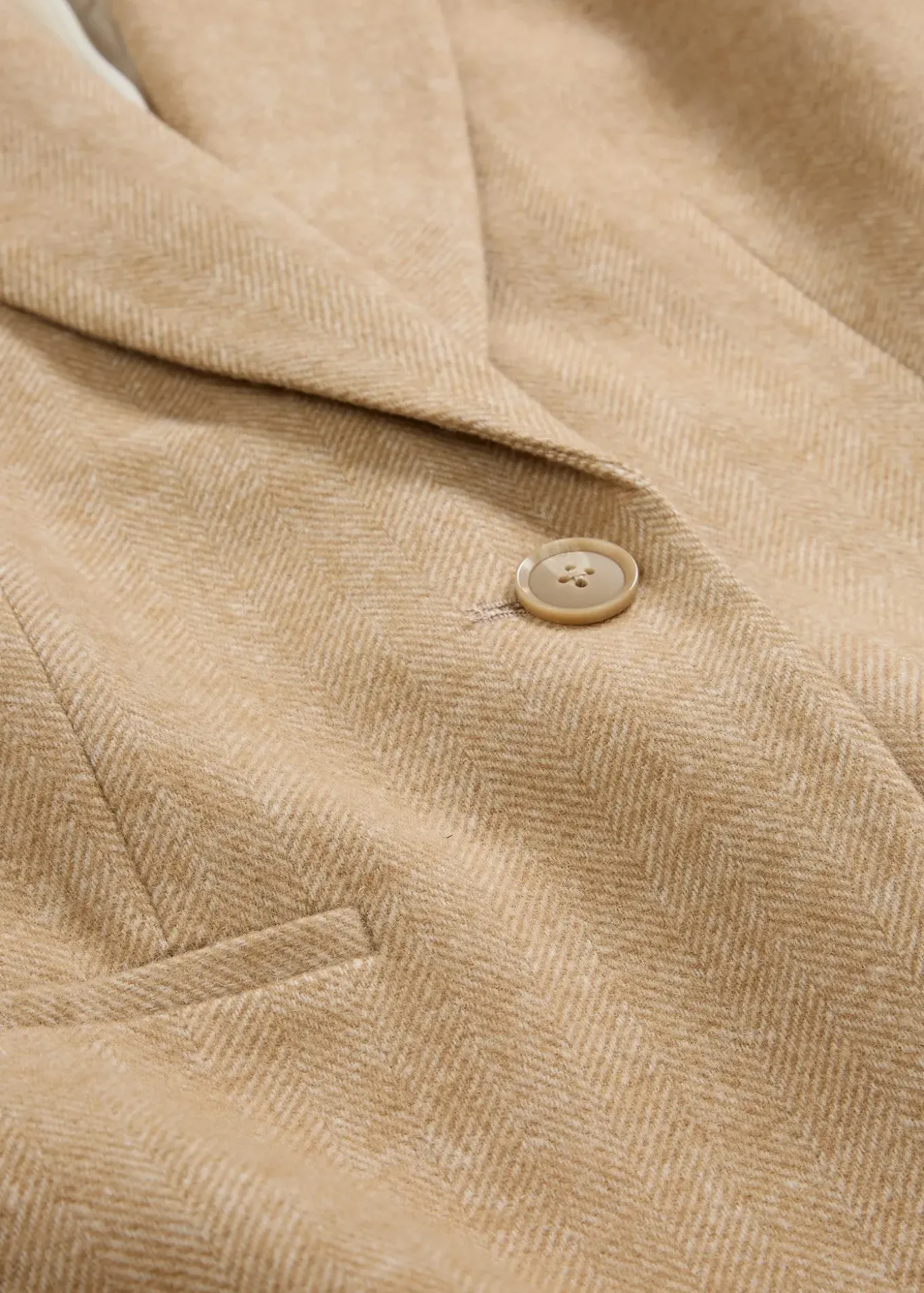 Dessus: 54% laine, 46% polyester recyclé, Doublure: 55% polyester recyclé, 45% viscose