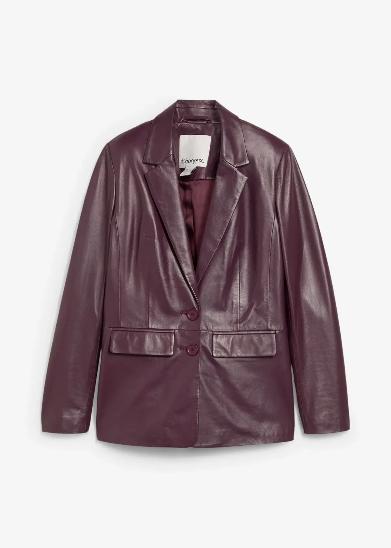 Blazer tendance en cuir d’agneau nappa avec poches à rabat, facile à combiner.