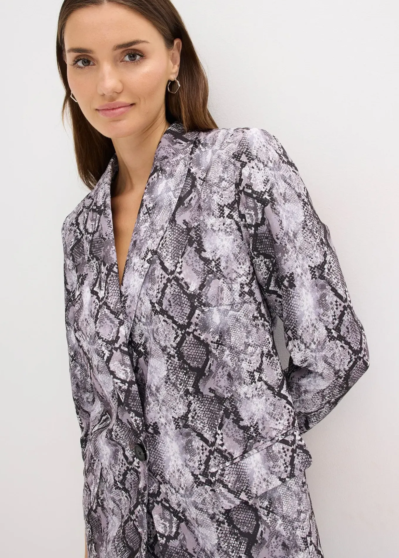 Blazer long à imprimé tendance et fermé par un bouton devant