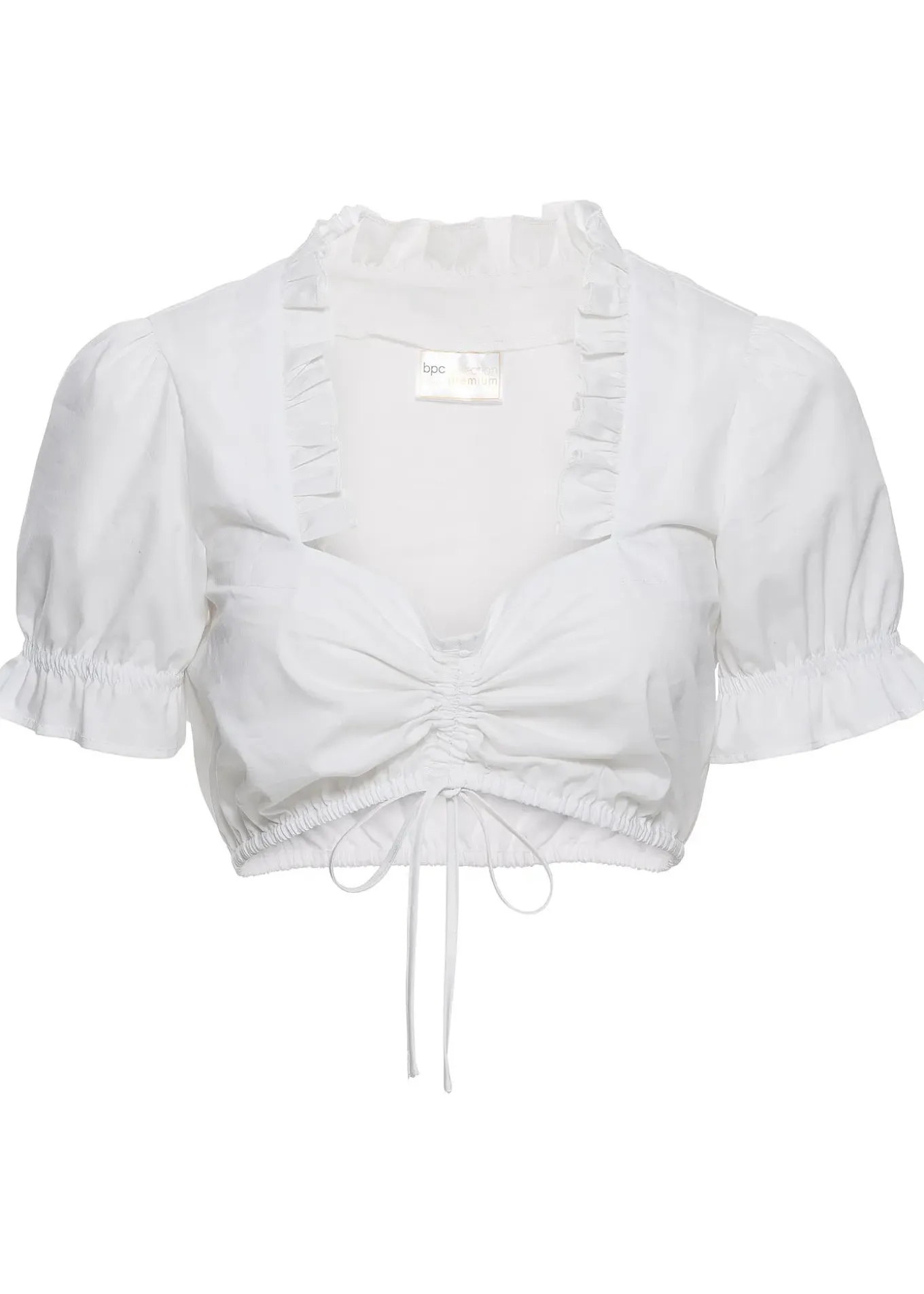 Blouse bavaroise traditionnelle « Dirndl » premium ornée de jolis ruchés sur le décolleté et sur les manches bouffantes, matière facile d’entretien, lien de serrage pour moduler le décolleté.
