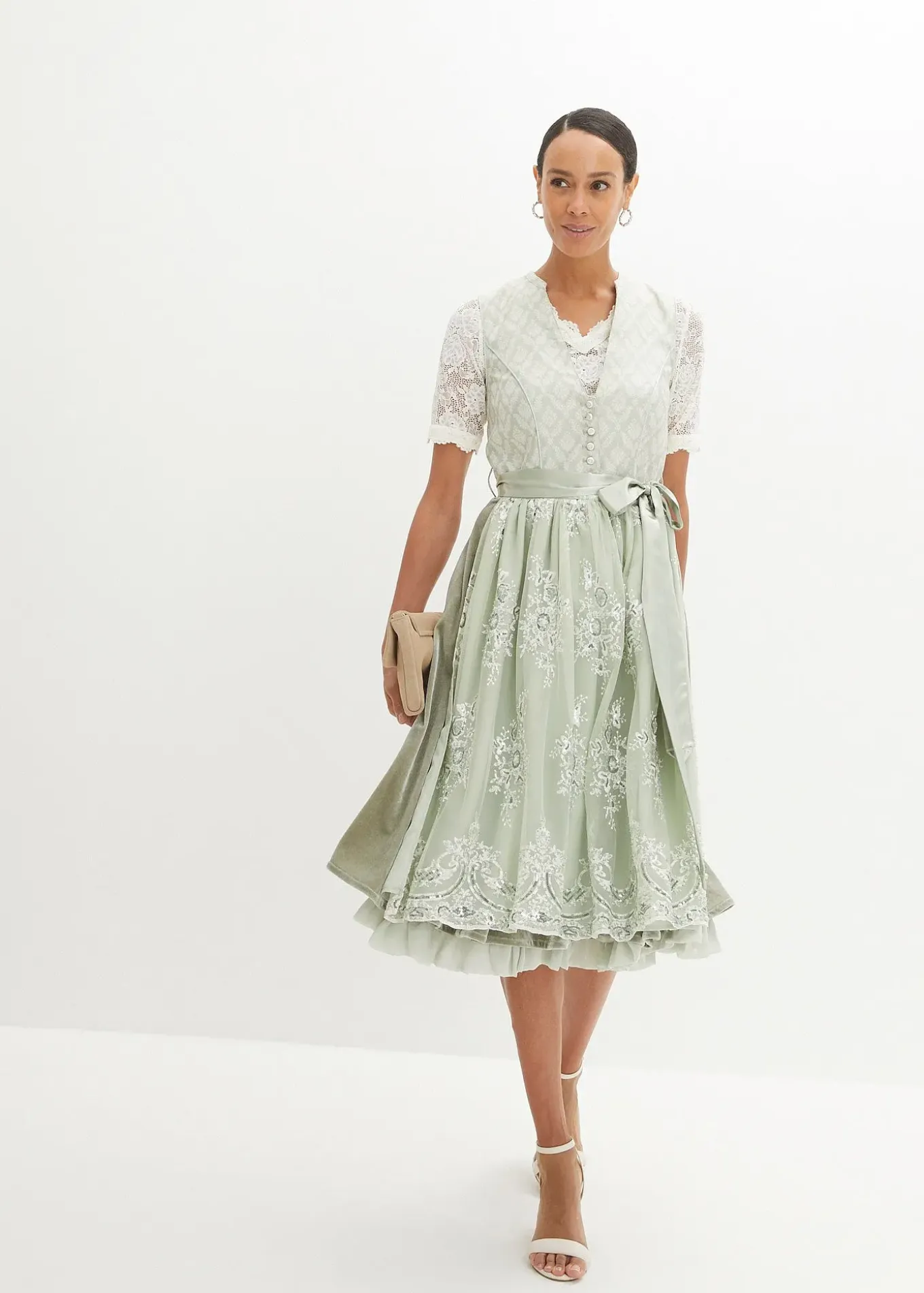 Belle blouse Dirndl avec dentelle florale et manches mi-longues