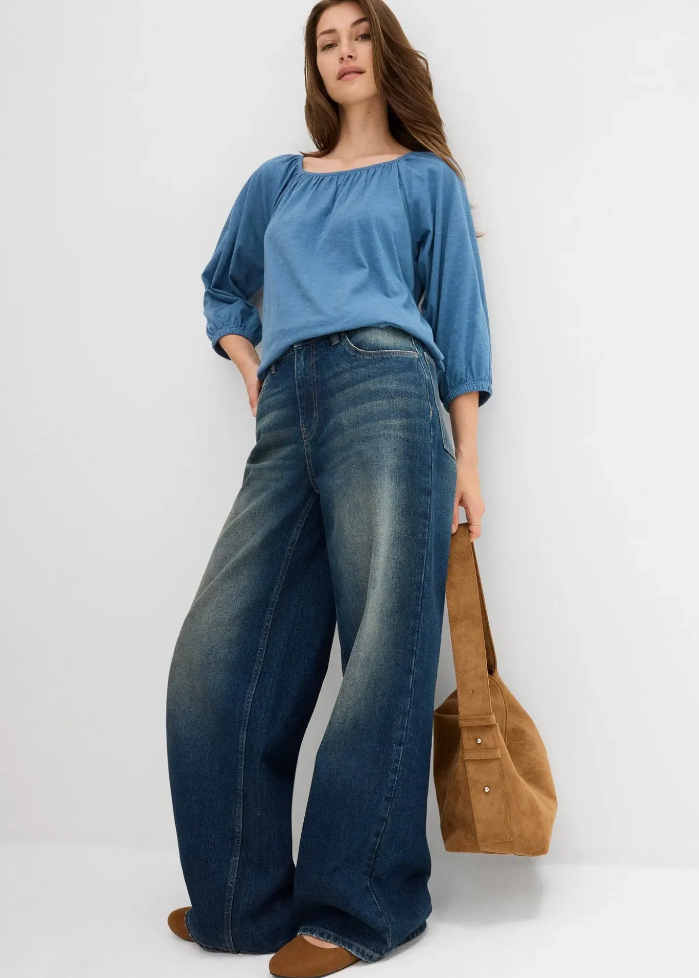 Blouse mode à encolure carrée et manches ballon flatteuses