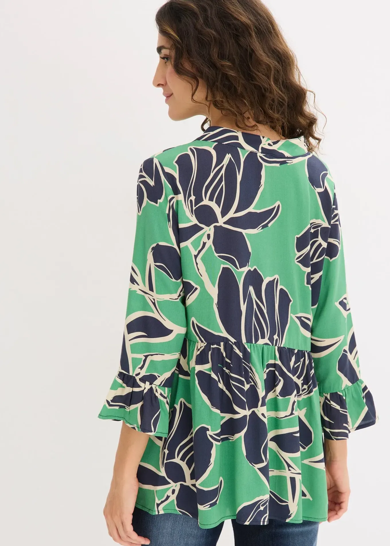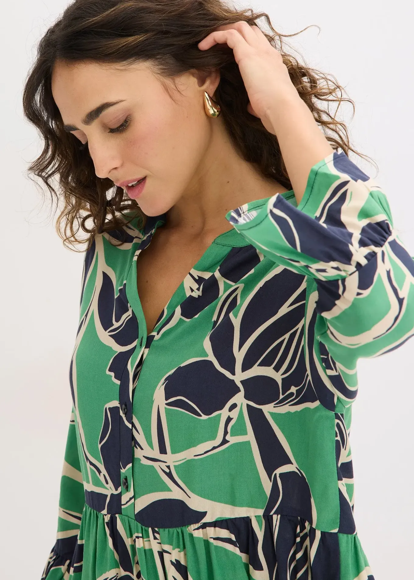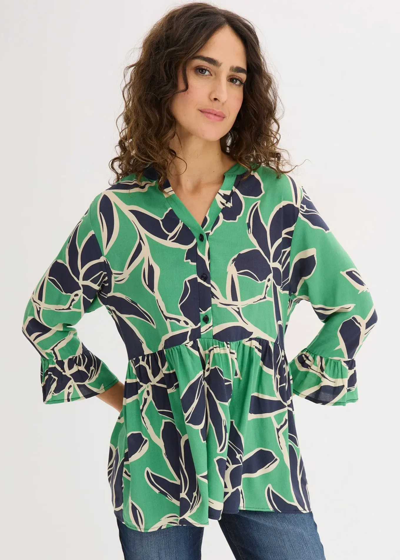 Blouse féminine en viscose fluide, avec patte de boutonnage devant