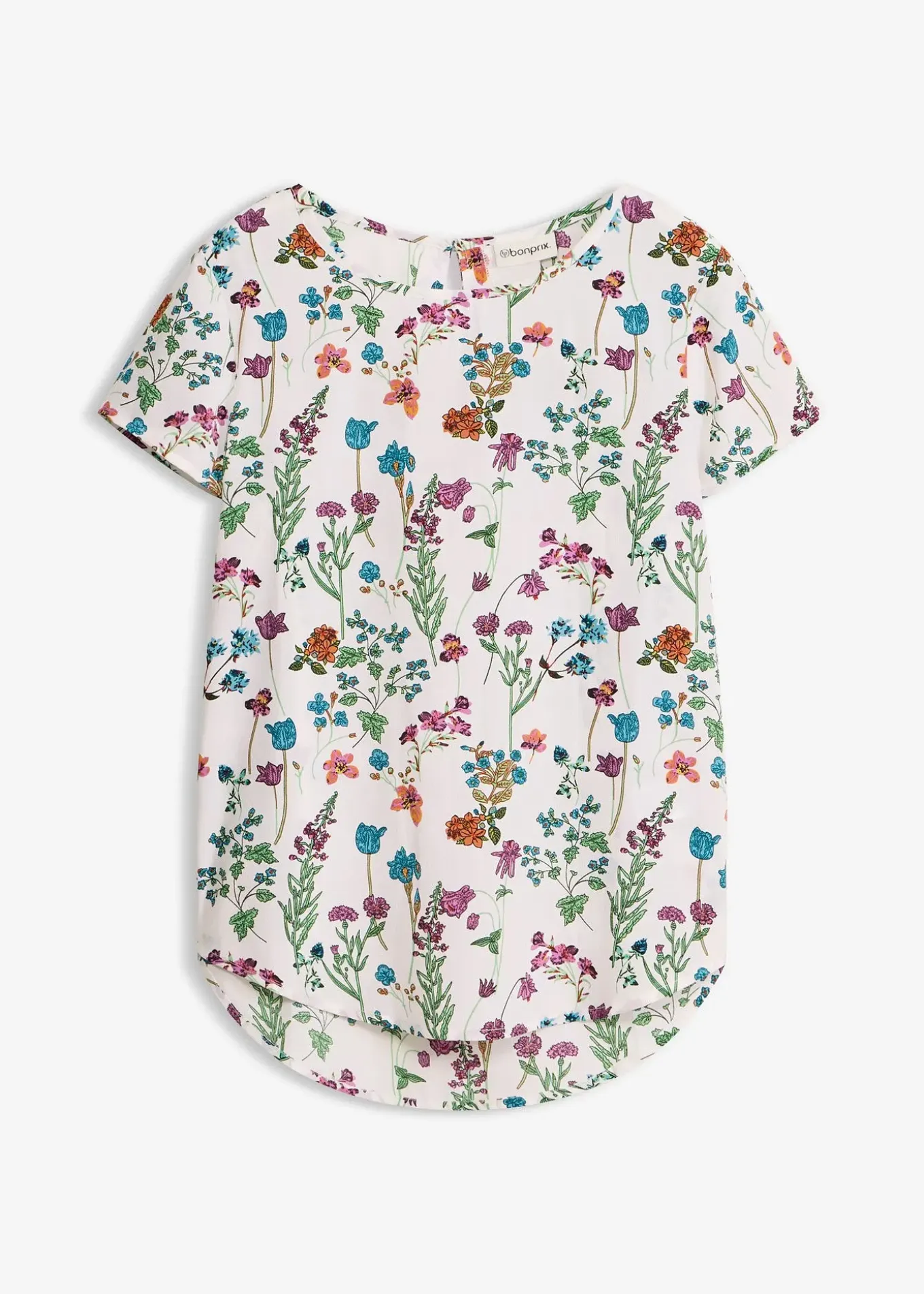 Blouse flatteuse pour la silhouette qui se ferme par un petit bouton dans la nuque. Long. env. 68 cm.