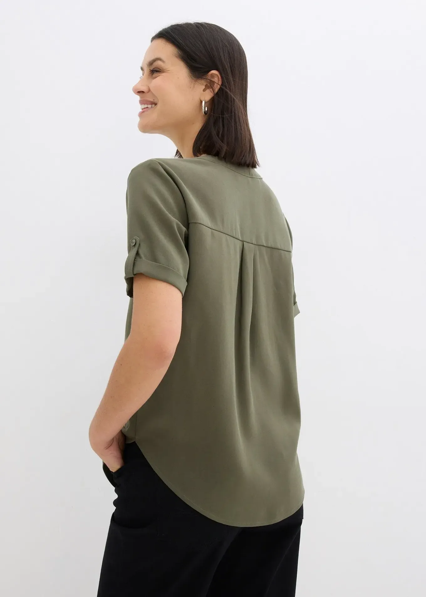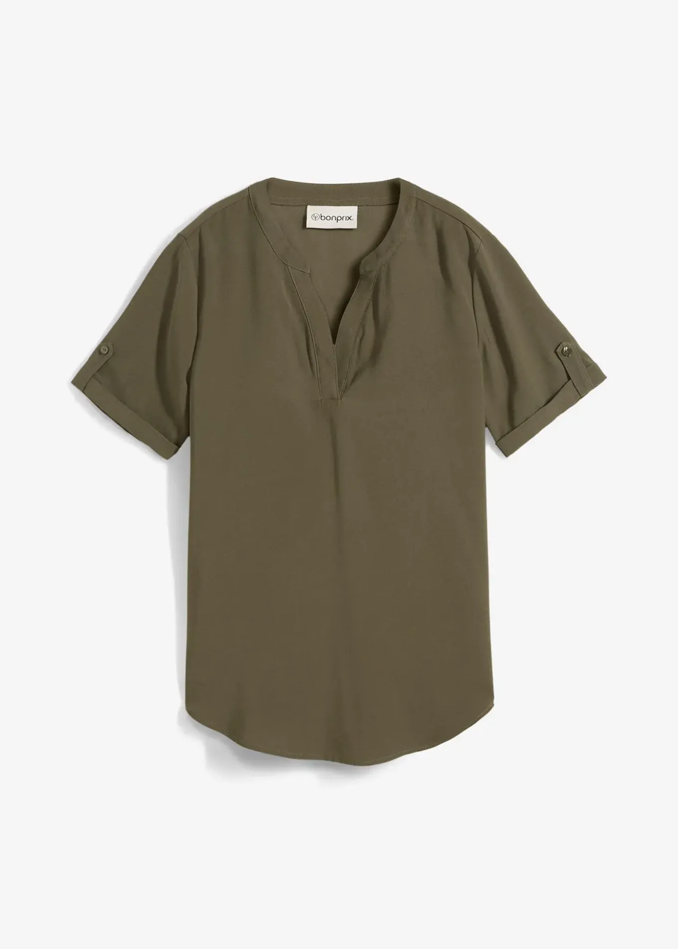 Blouse décontractée à col V et manches retroussées