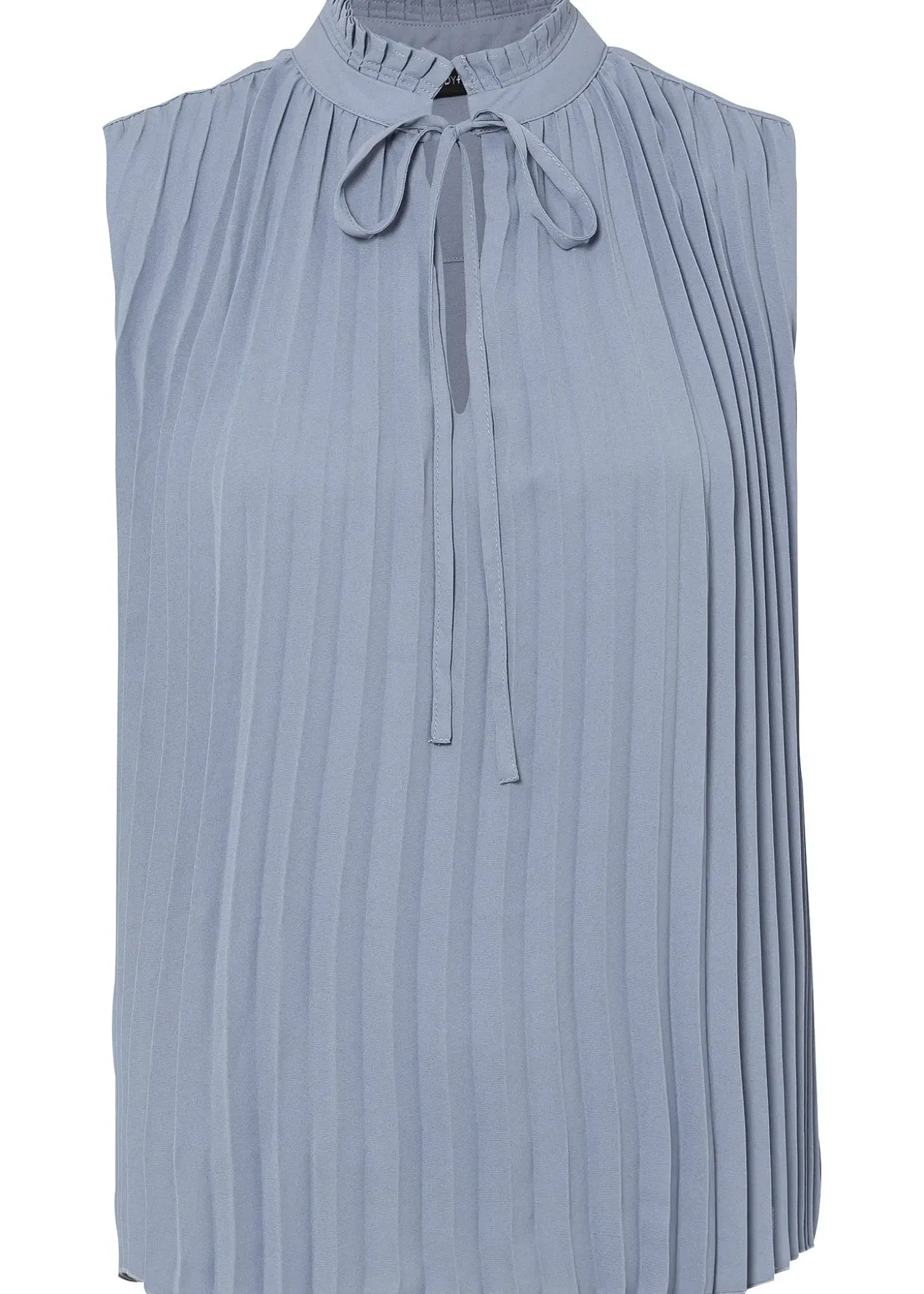 Ravissante blouse plissée sans manches avec lien à nouer au col
