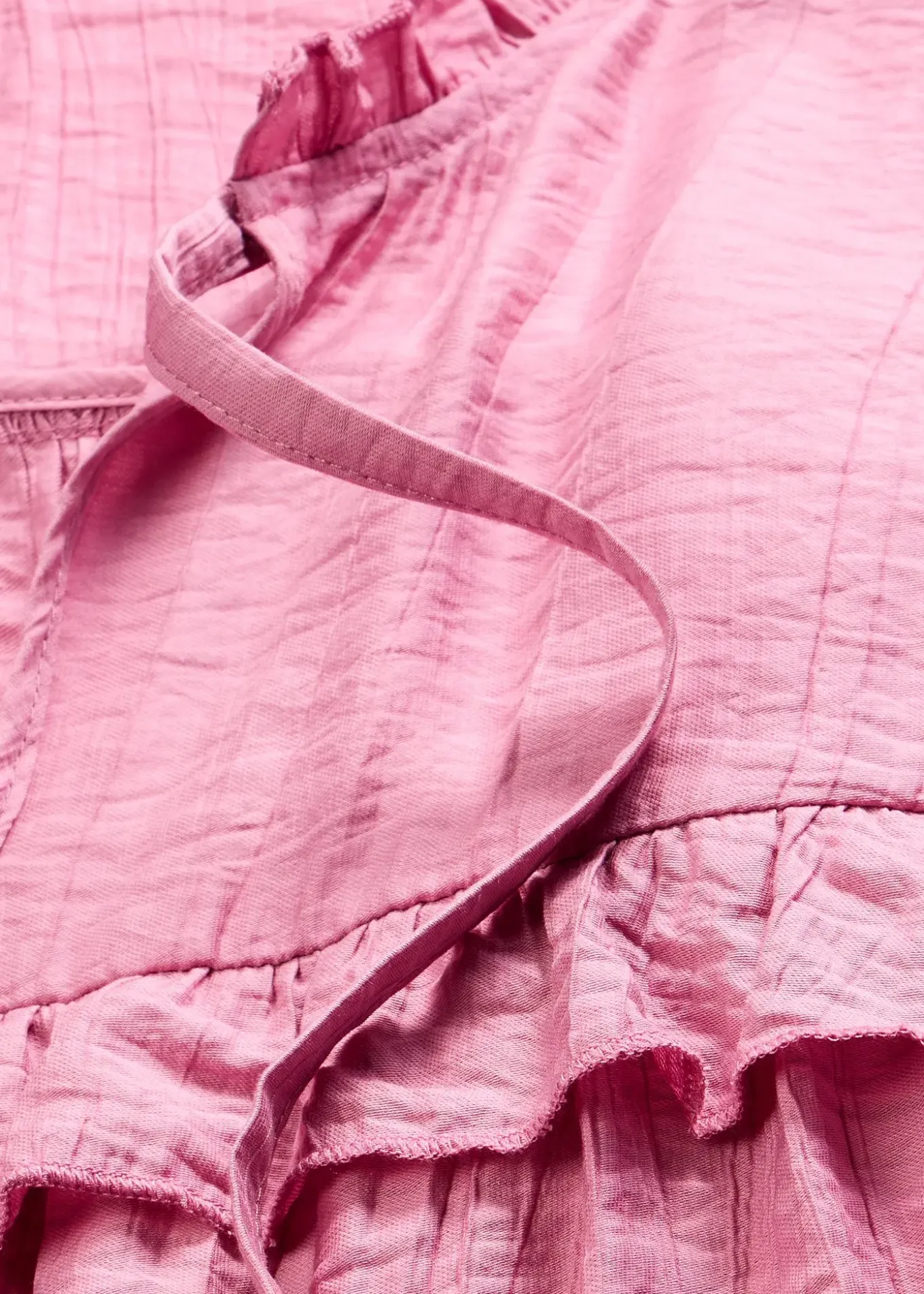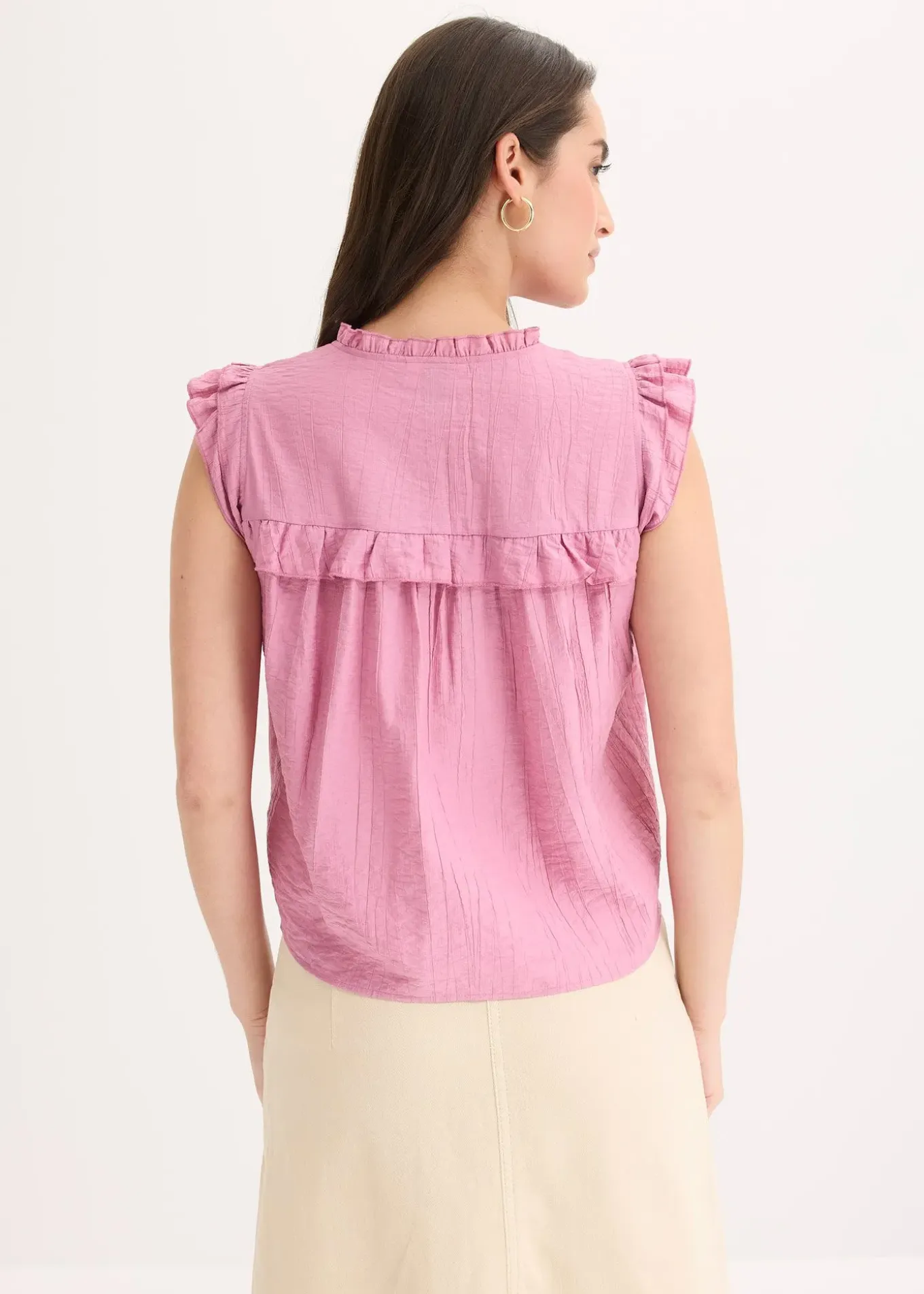 Blouse volantée en viscose majoritaire. Un indispensable mode !