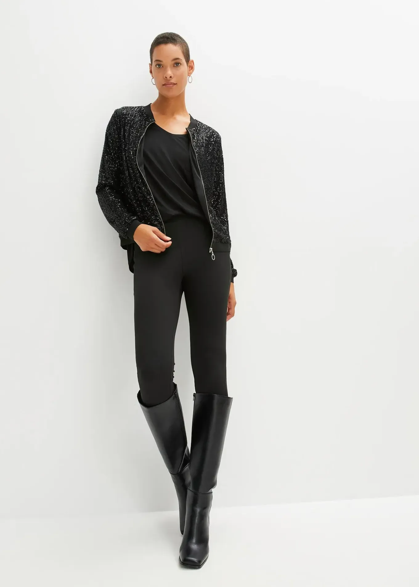 Blouson tendance à sequins et finitions bords-côtes