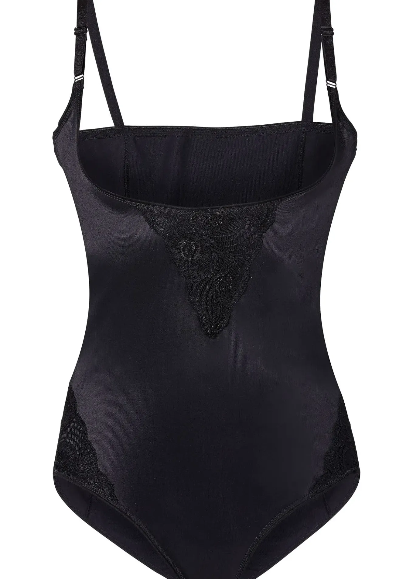 Gainant la ceinture abdominale, ce body sculptant niveau 3 est parfait pour affiner la taille. Astucieux, ce body modelant au décolleté plongeant se complète d’un soutien-gorge rembourré et peut se porter sous des vêtements à encolure dégagée. Fermeture par œillet et crochets, gousset en coton et bordures en dentelle sur le haut et l’échancrure.