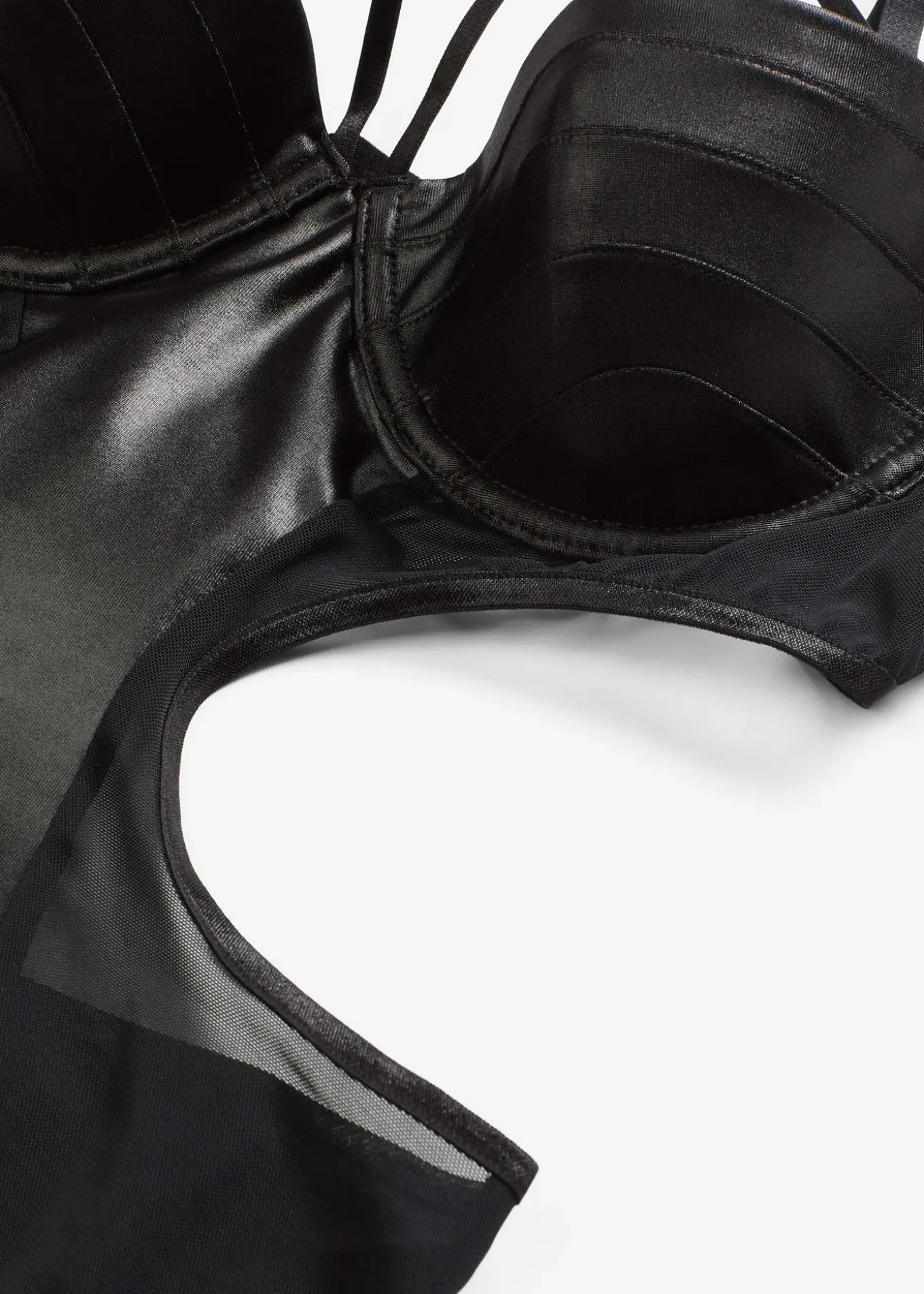 Body-string ouvert effet mouillé avec empiècements mesh.
