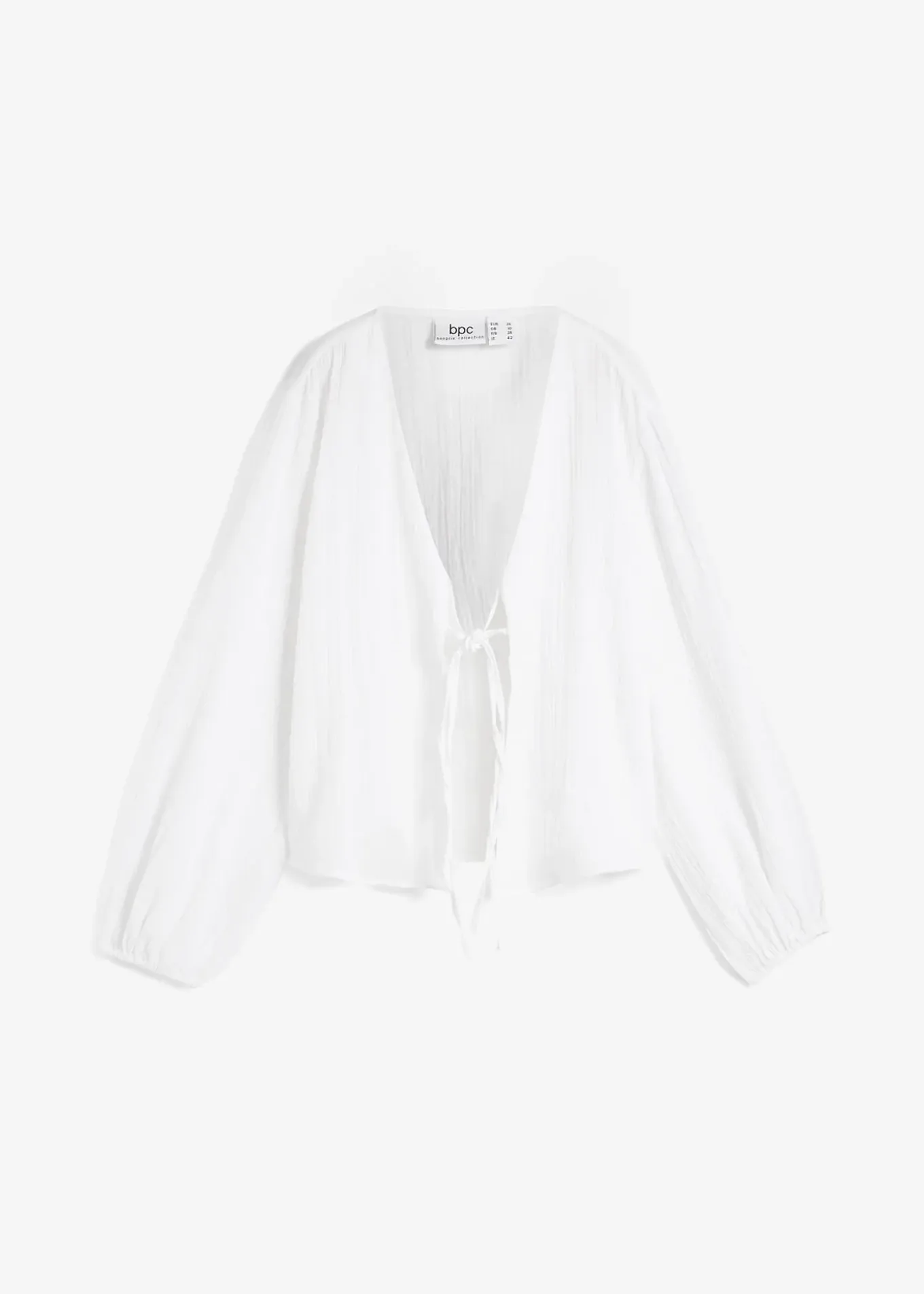 Boléro moderne en gaze de coton avec manches ballon et lien à nouer