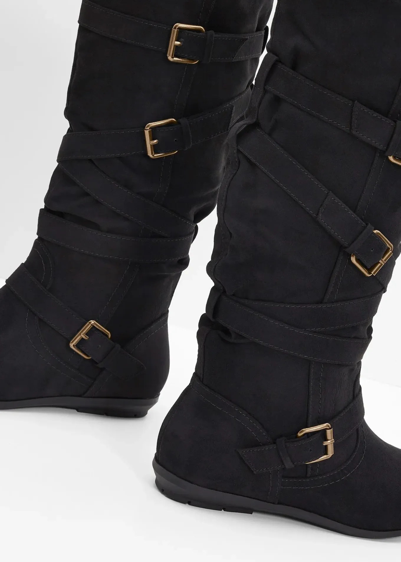 Modernes et faciles à porter, à enfiler, hauteur de tige 37 cm, tour de mollet 38 cm, brides entrelacées avec 3 boucles fantaisie.