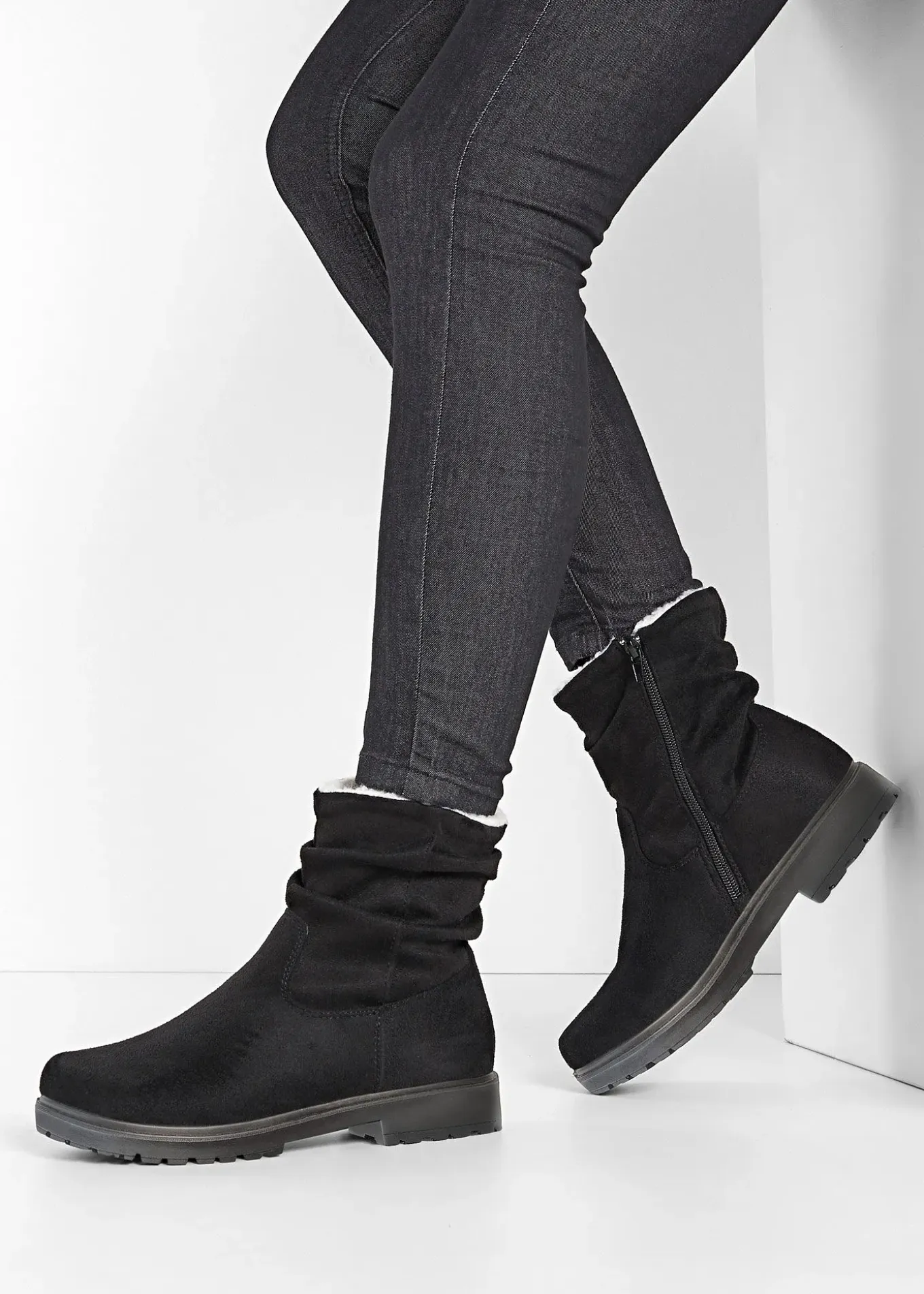 Avec zip, doublure intérieure chaude en textile, semelle extérieure profilée, fronces décoratives sur la tige.