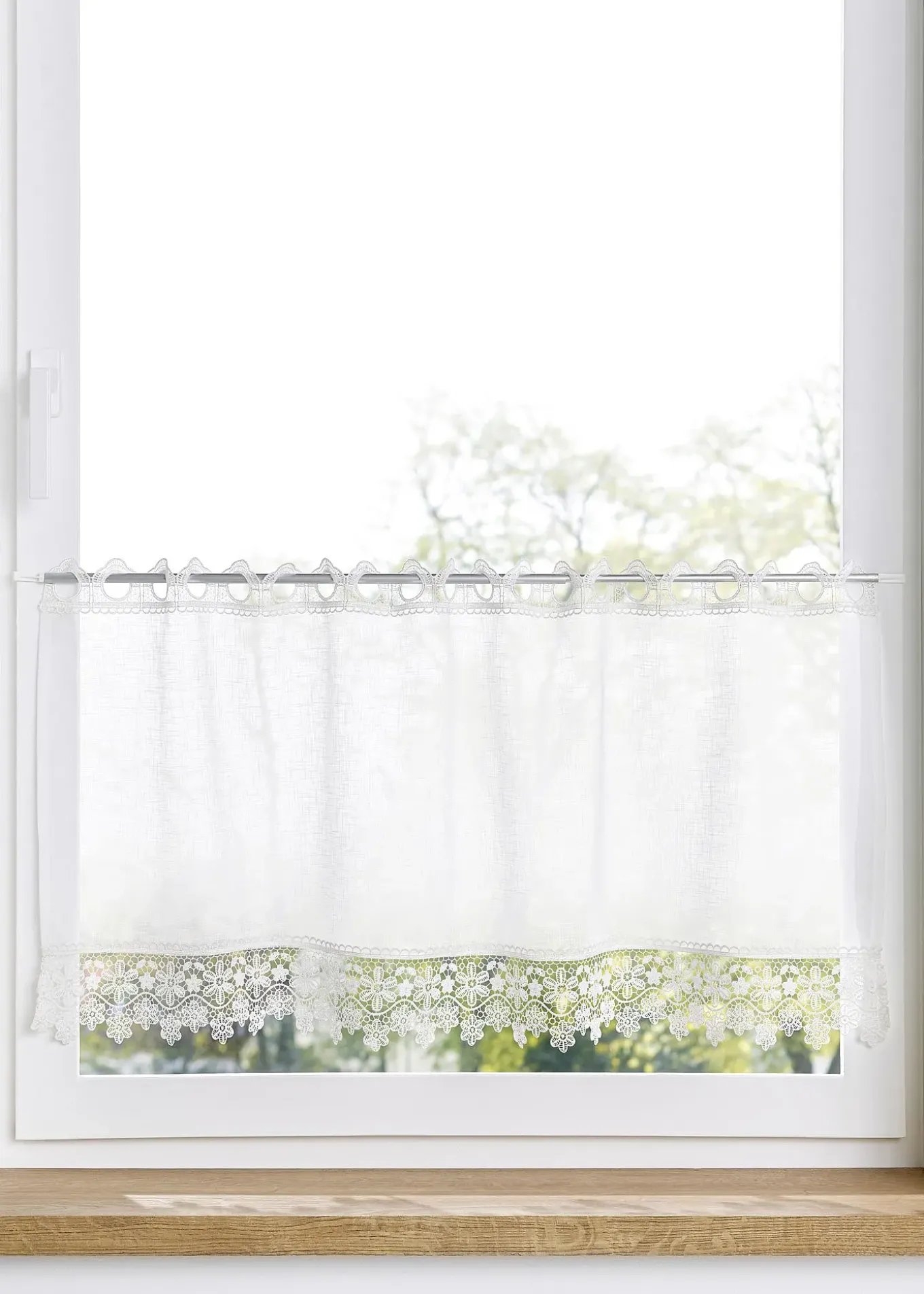 Brise-bise romantique de coloris uni agrémenté d’une fine bordure en crochet à la base pour décorer votre petite fenêtre avec raffinement. Convient pour une ambiance campagne mais également pour d’autres styles d’intérieur avec une touche nature.