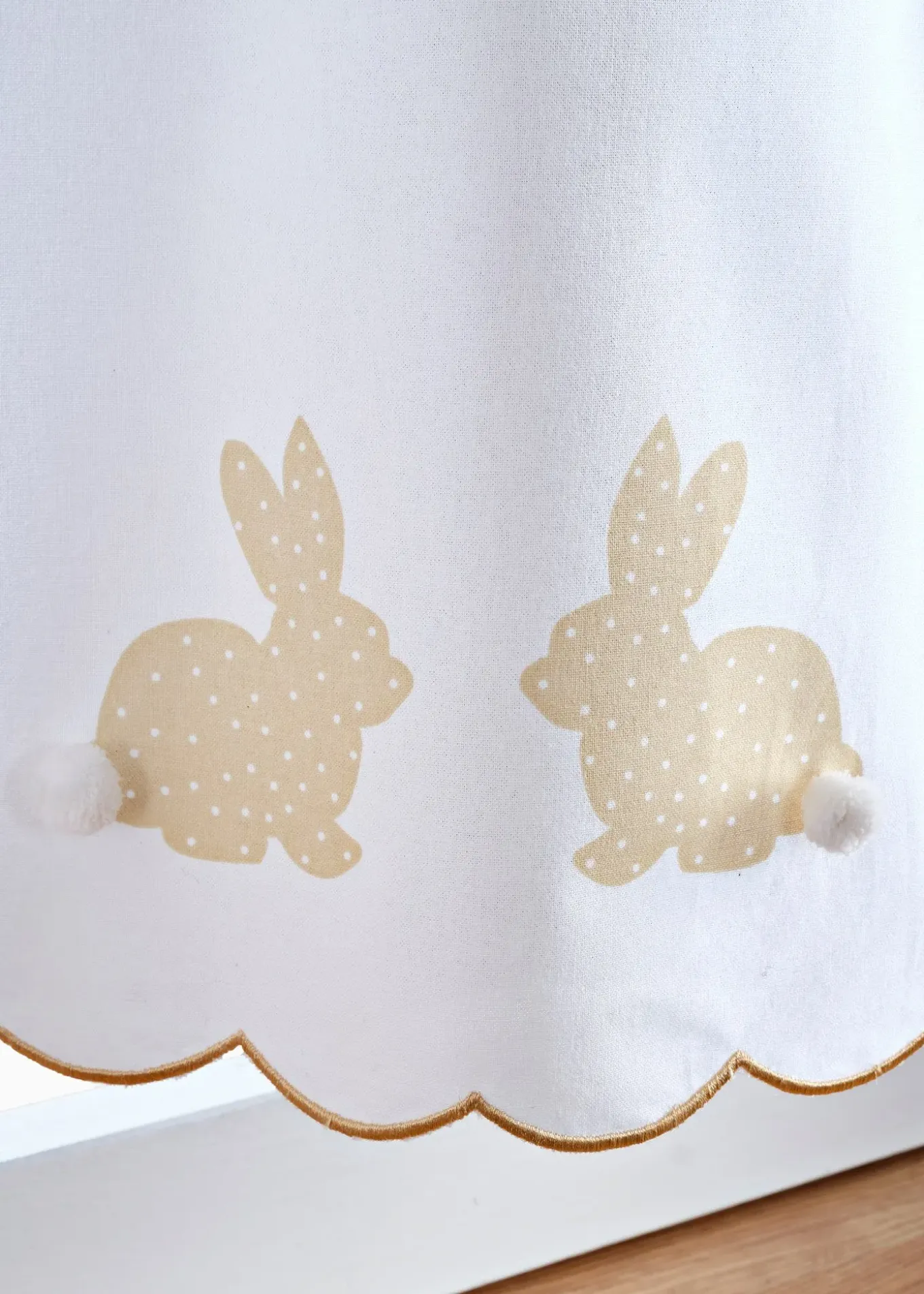 Brise-bise avec adorable motif de lapins de Pâques avec un pompon. Une déco de fenêtre à la fois discrète et originale pour Pâques !