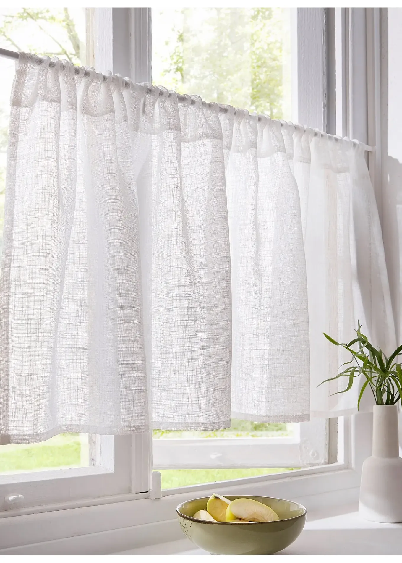 Brise-bise élégant effet lin. Coulisse passe-tringle pour diamètre max. 3 cm.