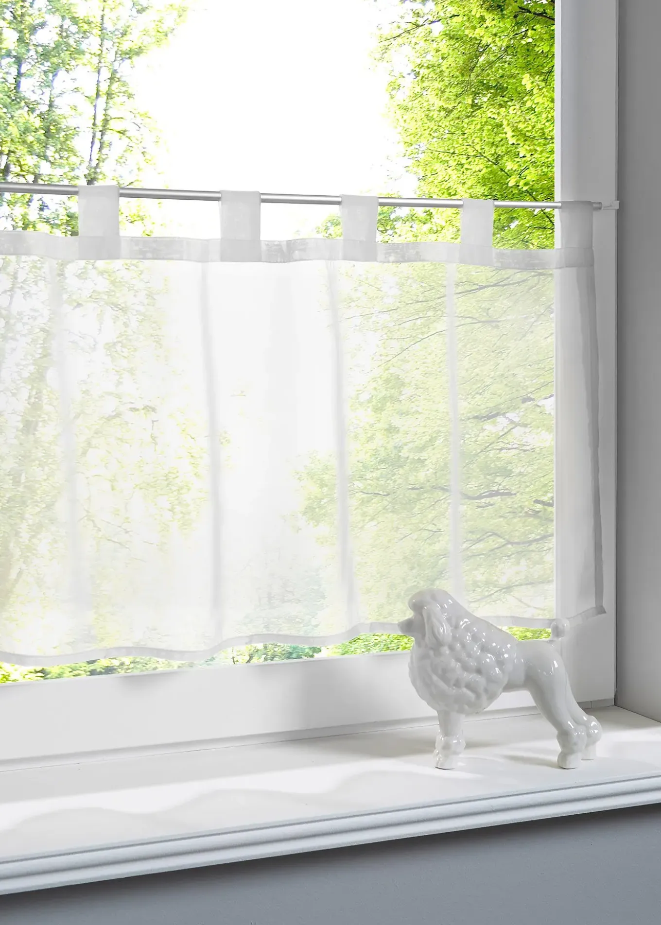 Style épuré et tissu fluide et léger : ce brise-bise transparent décore votre fenêtre avec simplicité ! Accrochage par pattes sur la tringle à rideau.