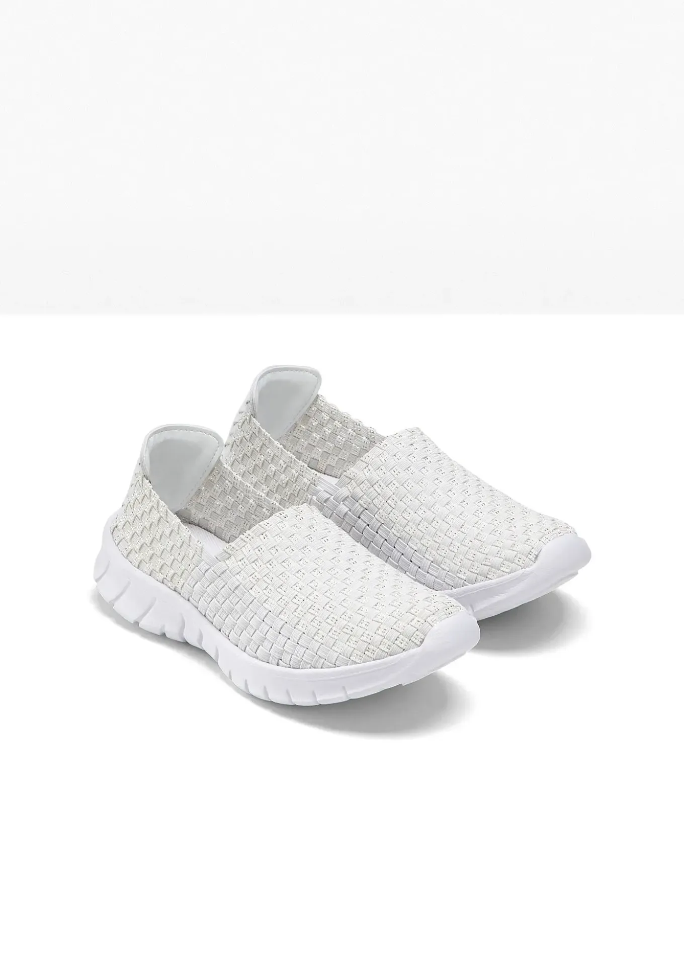 Slippers modernes en jolie matière élastique pour un confort optimal, faciles à combiner.