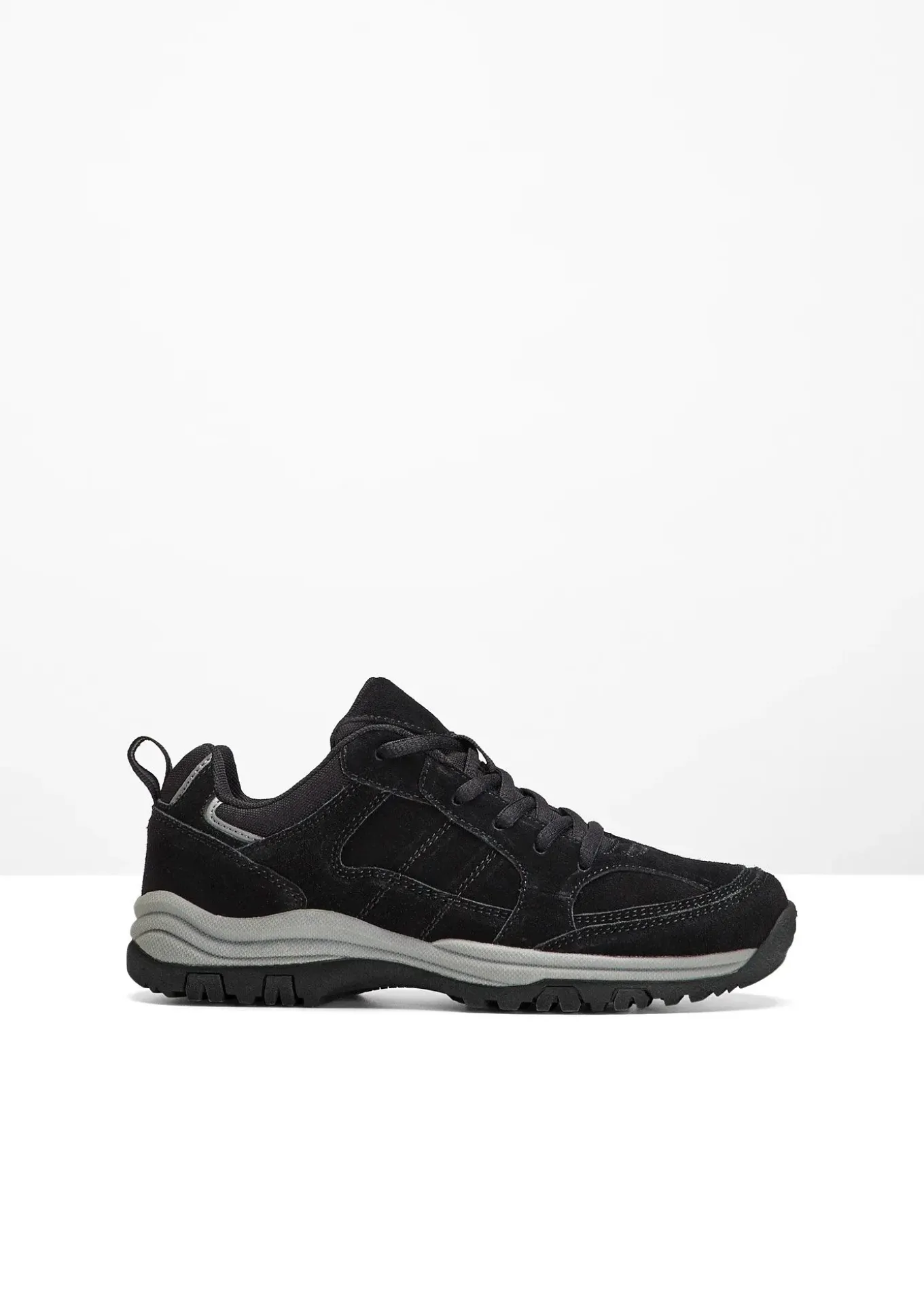 Chaussure de randonnée en cuir de bpc. Coutures décoratives, laçage pour ajuster la largeur, Semelle robuste et crantée.
