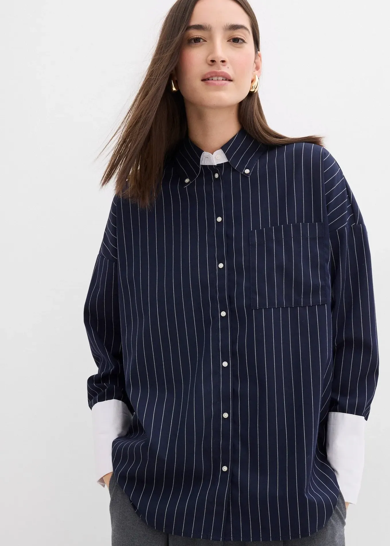 Chemise oversize avec poche poitrine ouverte, manchettes contrastantes et boutonnées