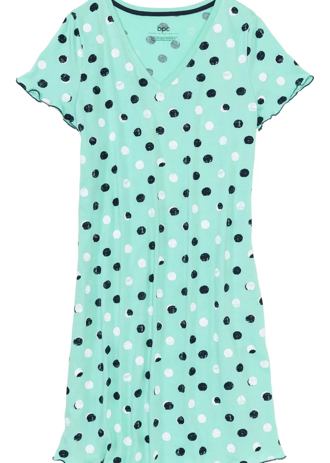 Cette chemise de nuit confortable présente une belle encolure en V arrondie et des manches courtes. Avec sa matière en coton agréable, elle fait partie des basiques de la garde-robe. Avec des bordures ondulées en bas et aux manches.