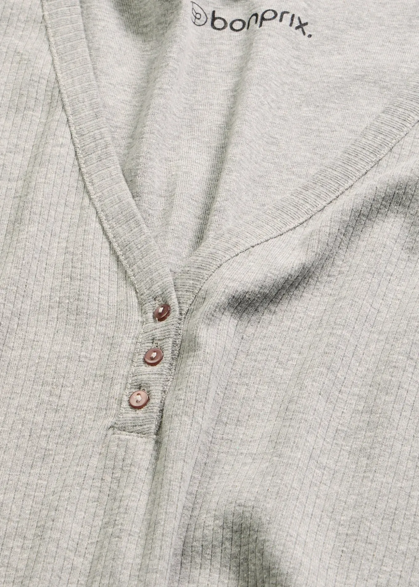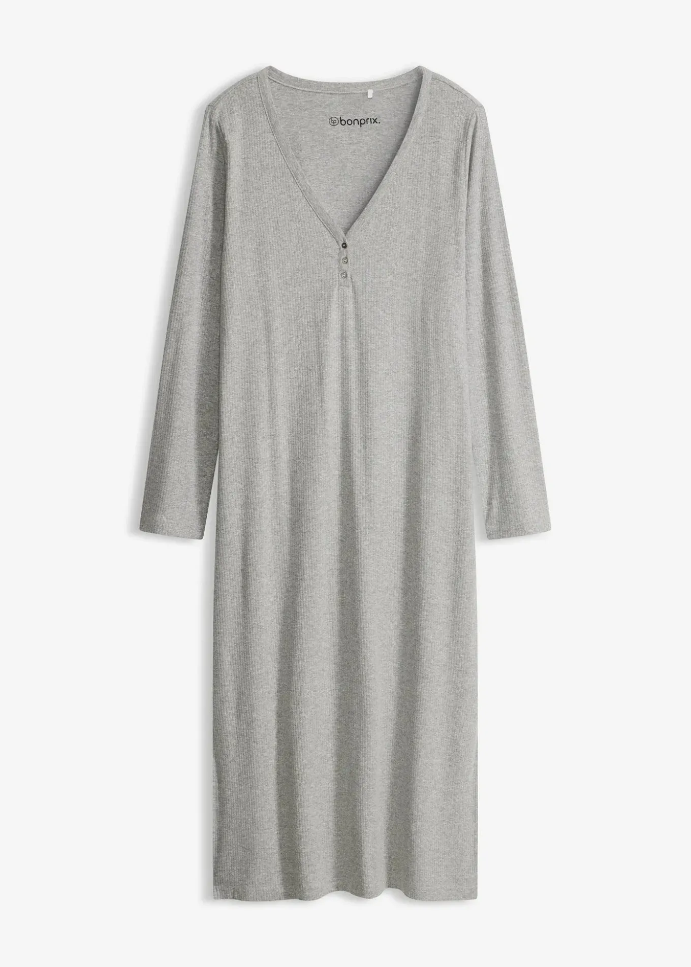 Chemise de nuit longue à manches longues, col en V et grande fente sur les côtés