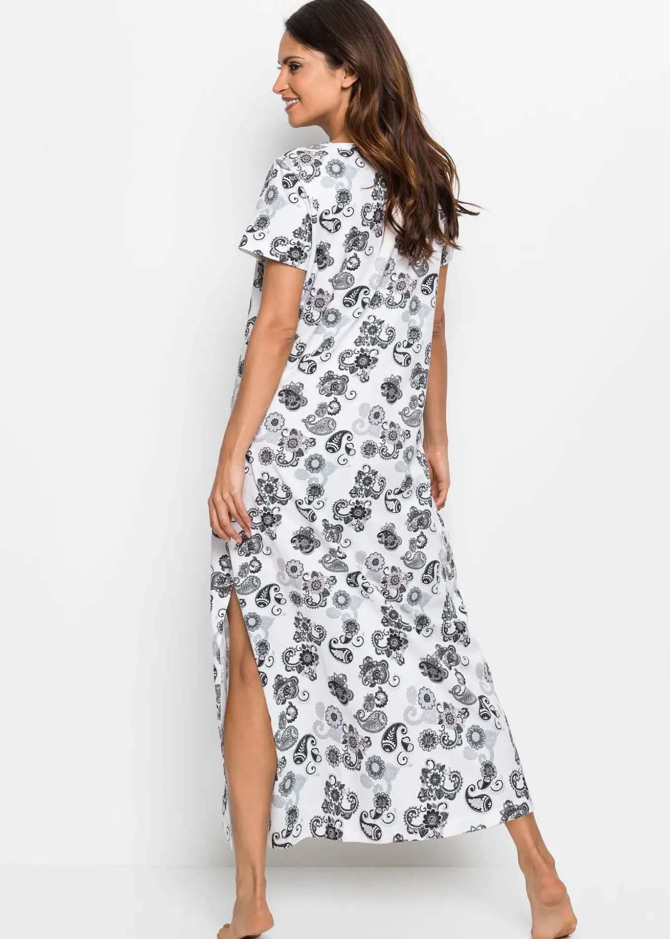 Chemise de nuit longue au design moderne. En coton doux avec longue fente latérale pour un port très confortable.