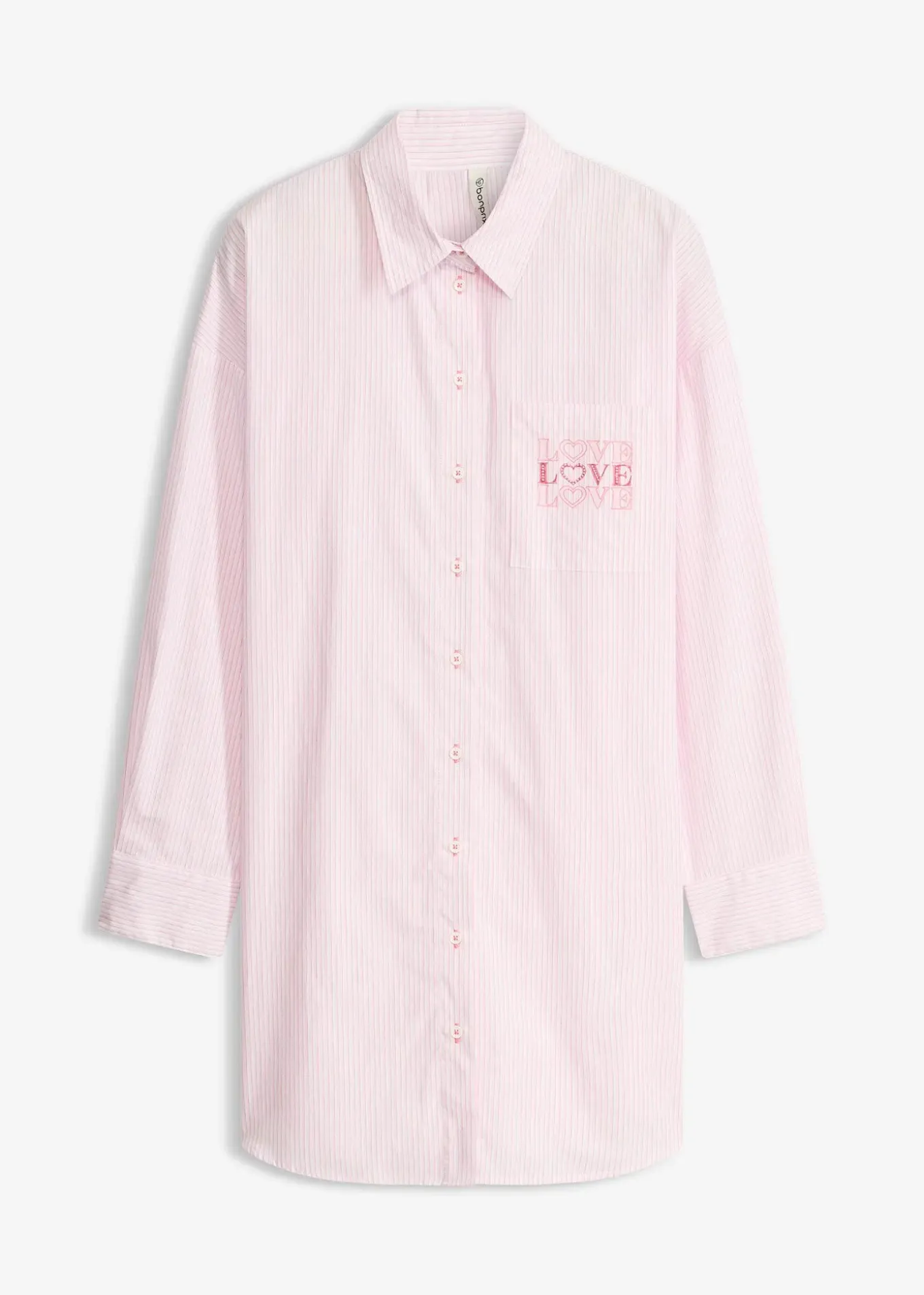 Chemise de nuit ample tissée, coupe boyfriend moderne, avec col chemise et poche poitrine avec imprimé