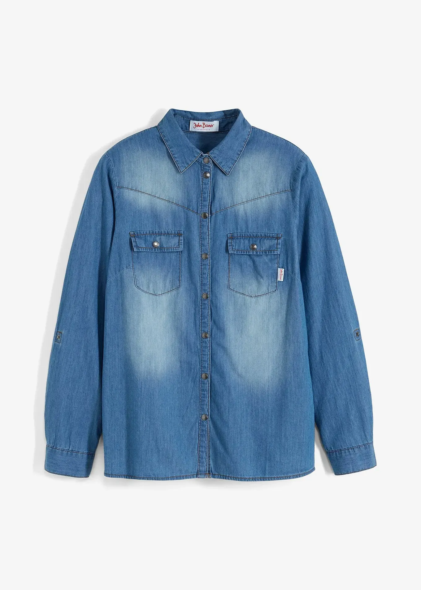 Décontractée et casual, la chemise denim John Baner est idéale pour le quotidien. Fluide et légère, ses manches longues peuvent se retrousser avec une patte pressionnée. Pratique, elle est équipée de deux poches plaquées à rabat sur la poitrine. Originale, elle est ornée de coutures décoratives et d’une petite étiquette John Baner.Facile à associer, elle se porte avec un pantalon noir et des sneakers ou un jean slim et des bottines. Indémodable, elle fait partie des indispensables du dressing féminin.