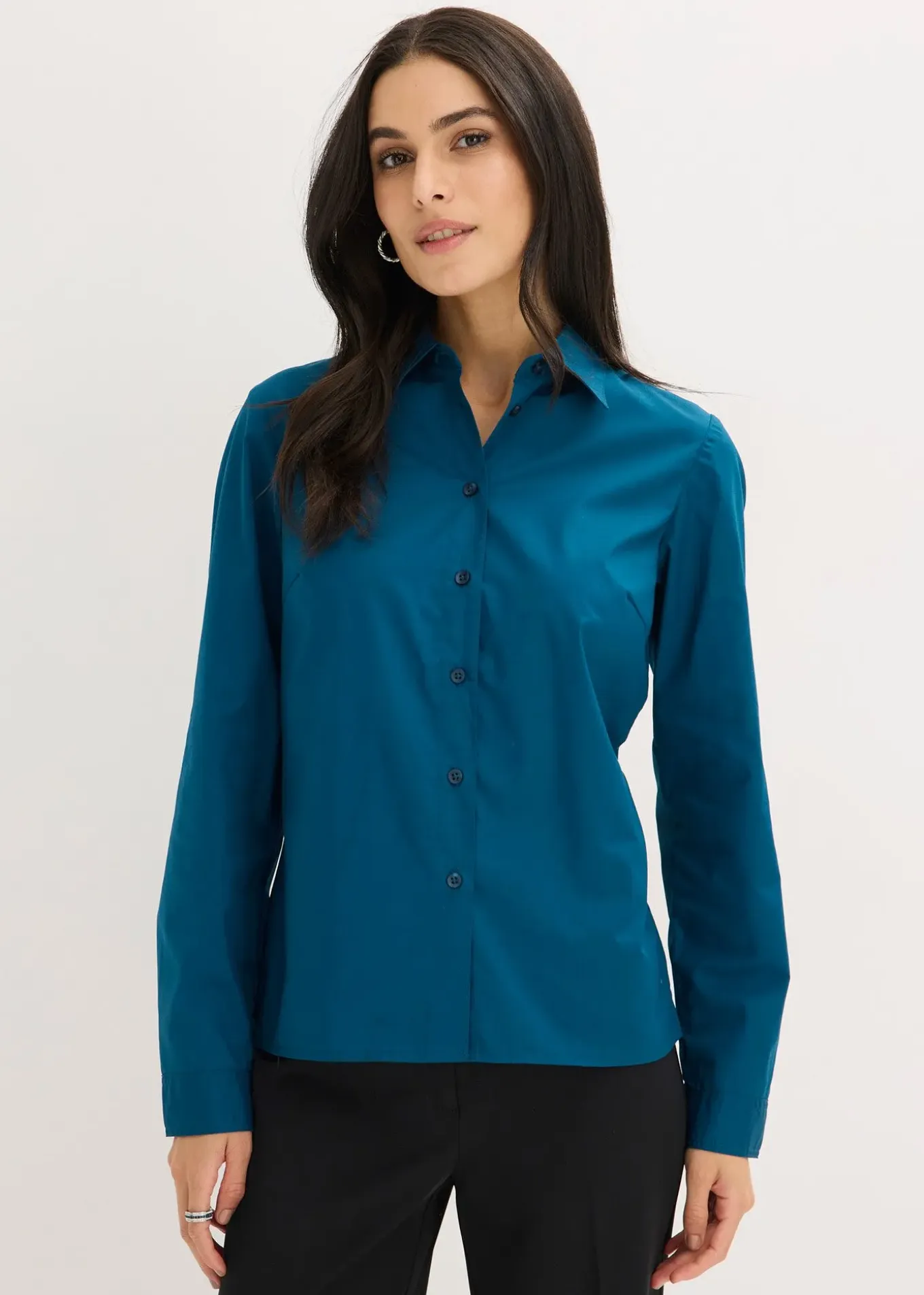 Classique et intemporel, à manches longues, fentes latérales, long. d’env. 62 cm à 71 cm, lavage machine.