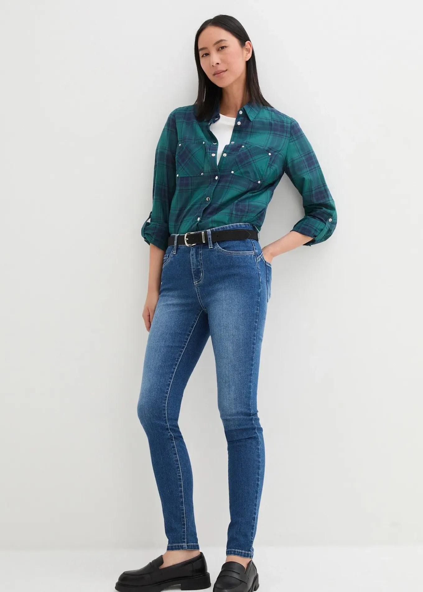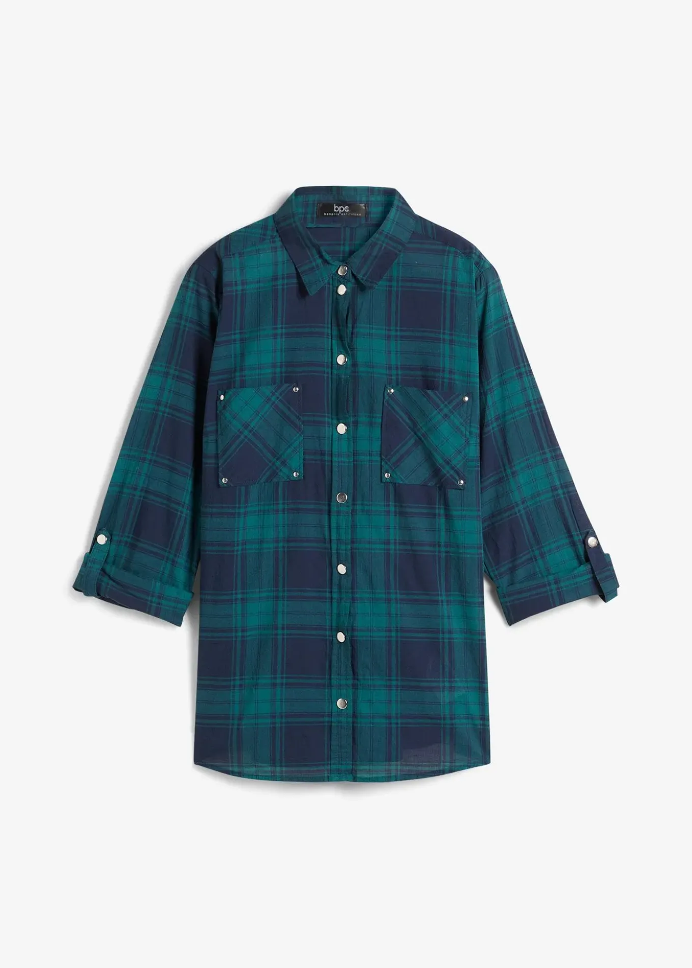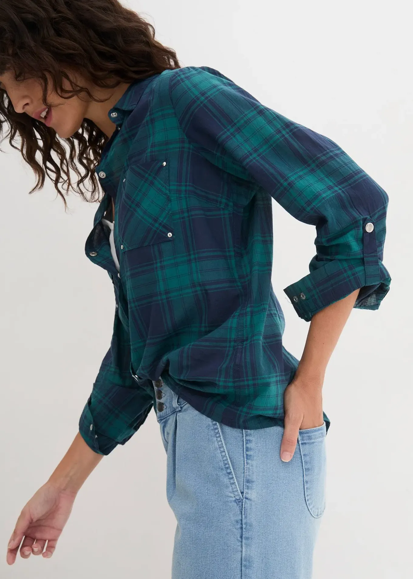 Chemisier ample avec boutons-pression et manches retroussables