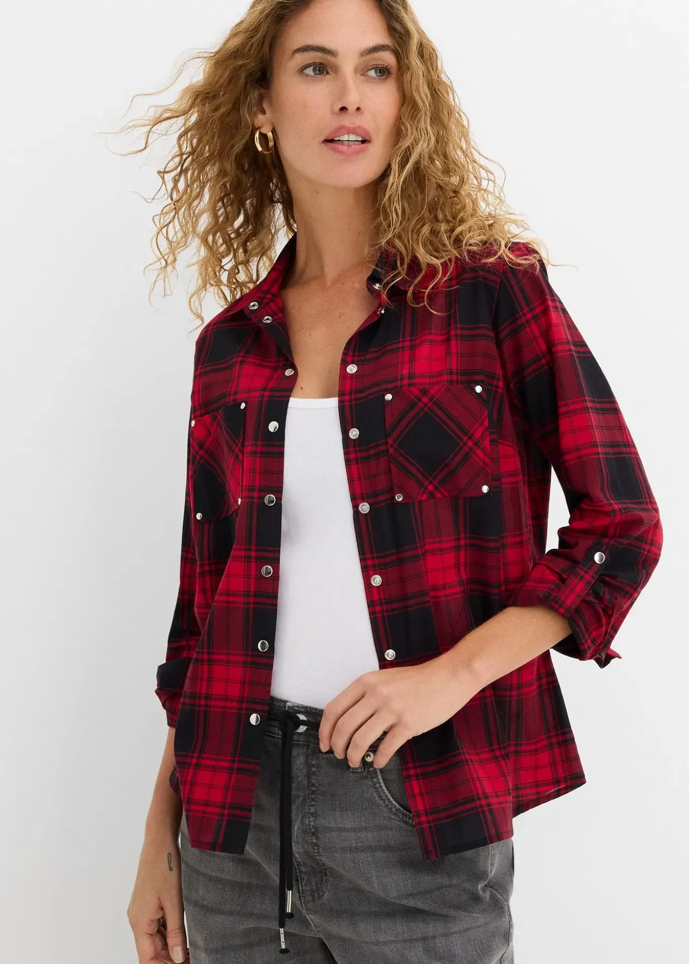 Chemisier ample avec boutons-pression et manches retroussables