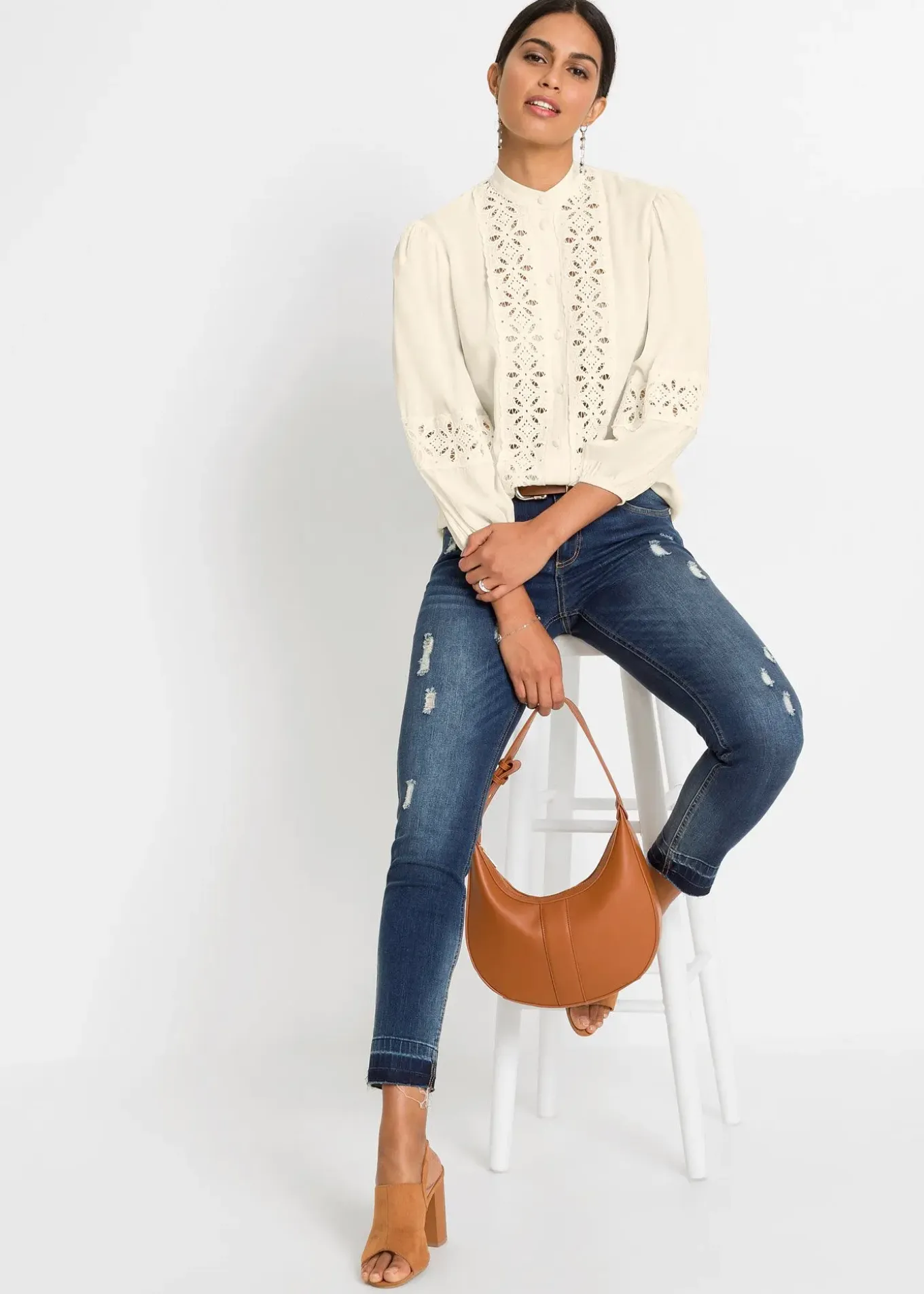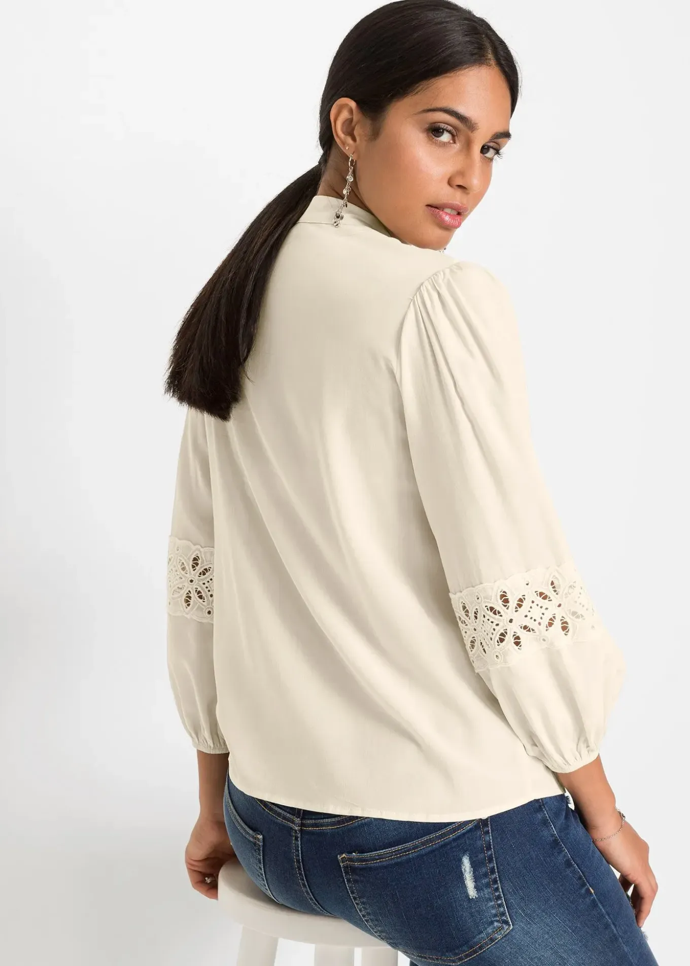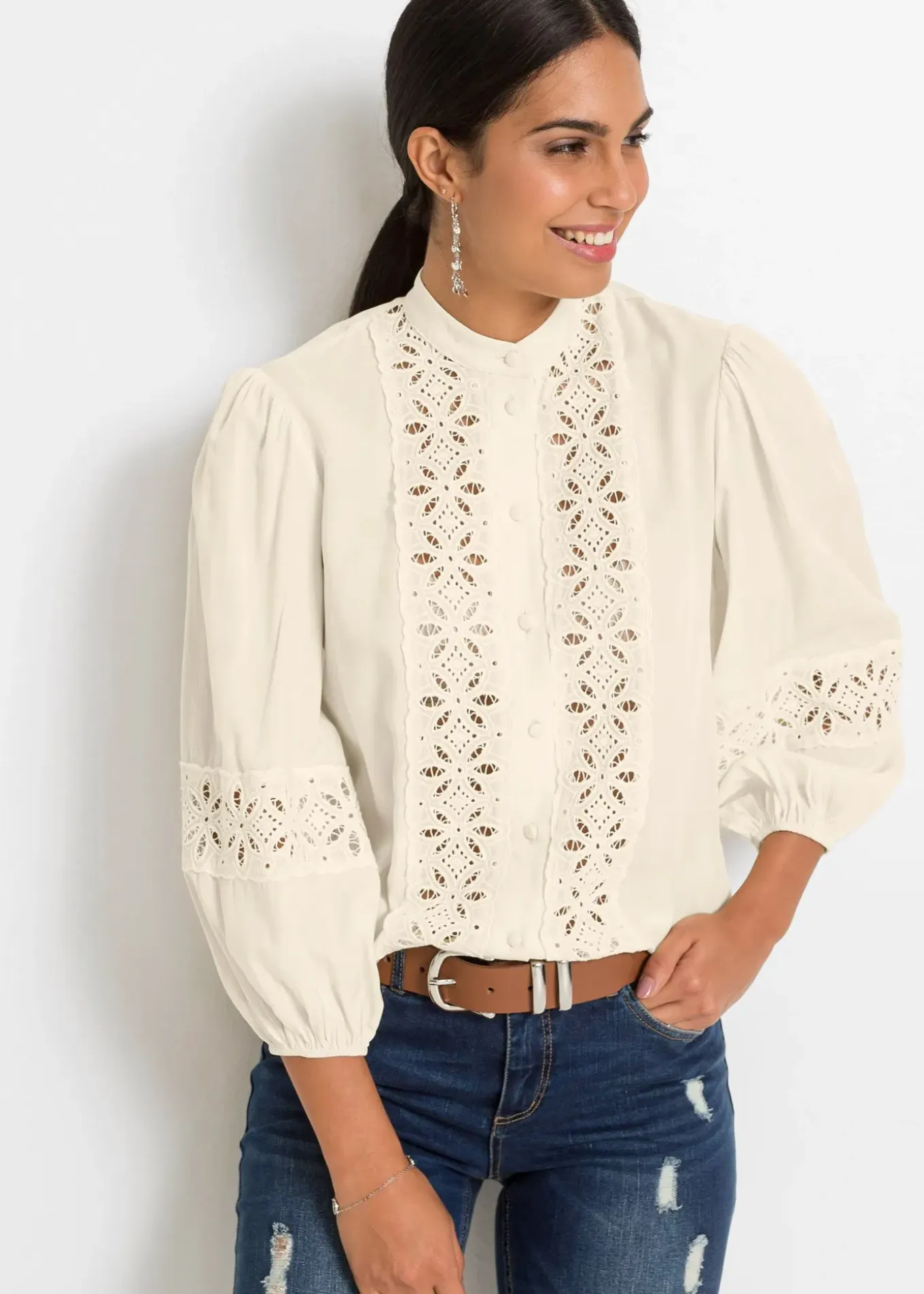 Chemisier fantaisie avec dentelle et manches bouffantes