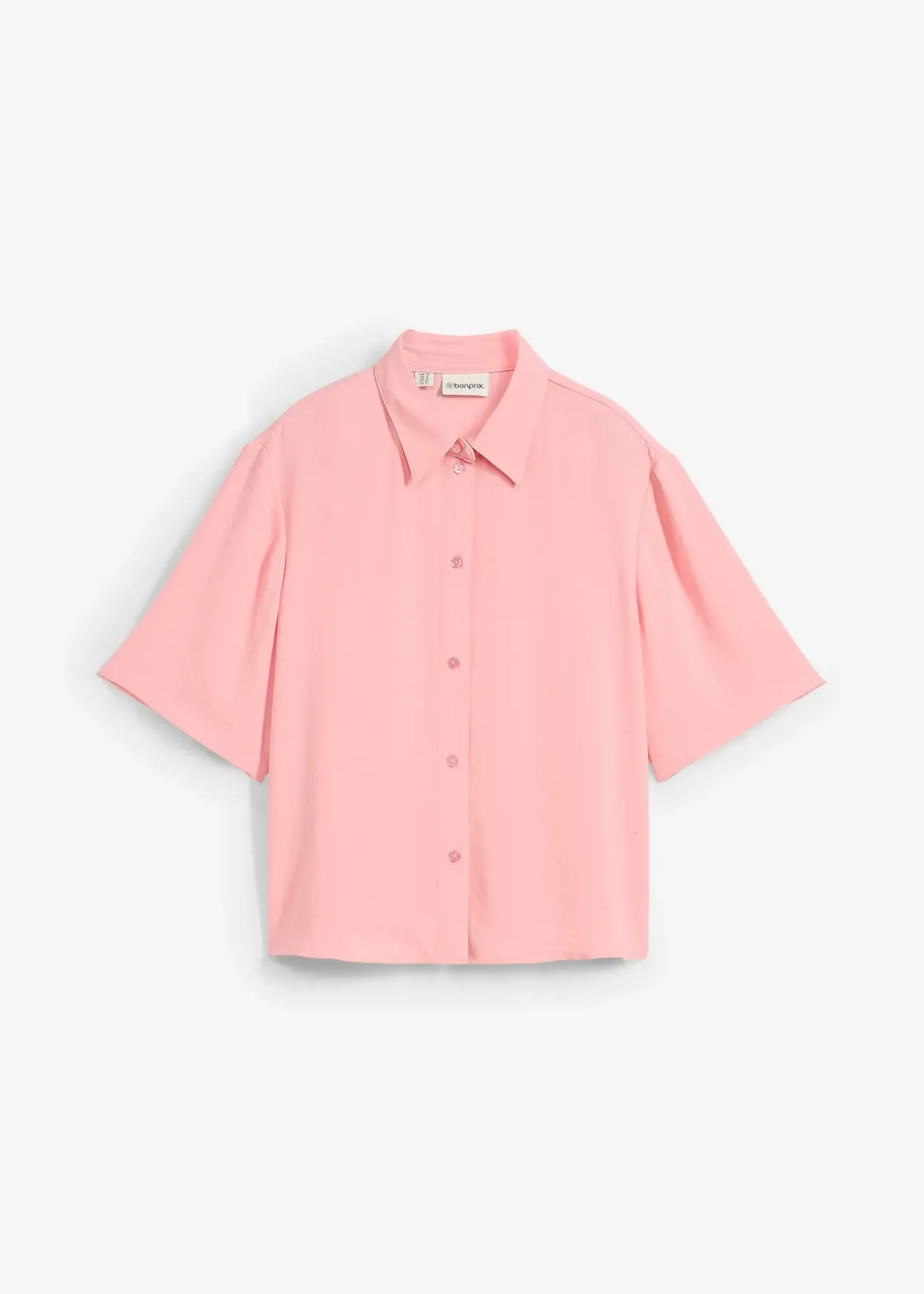 Chemisier court et boxy, demi-manches, col à revers et patte de boutonnage