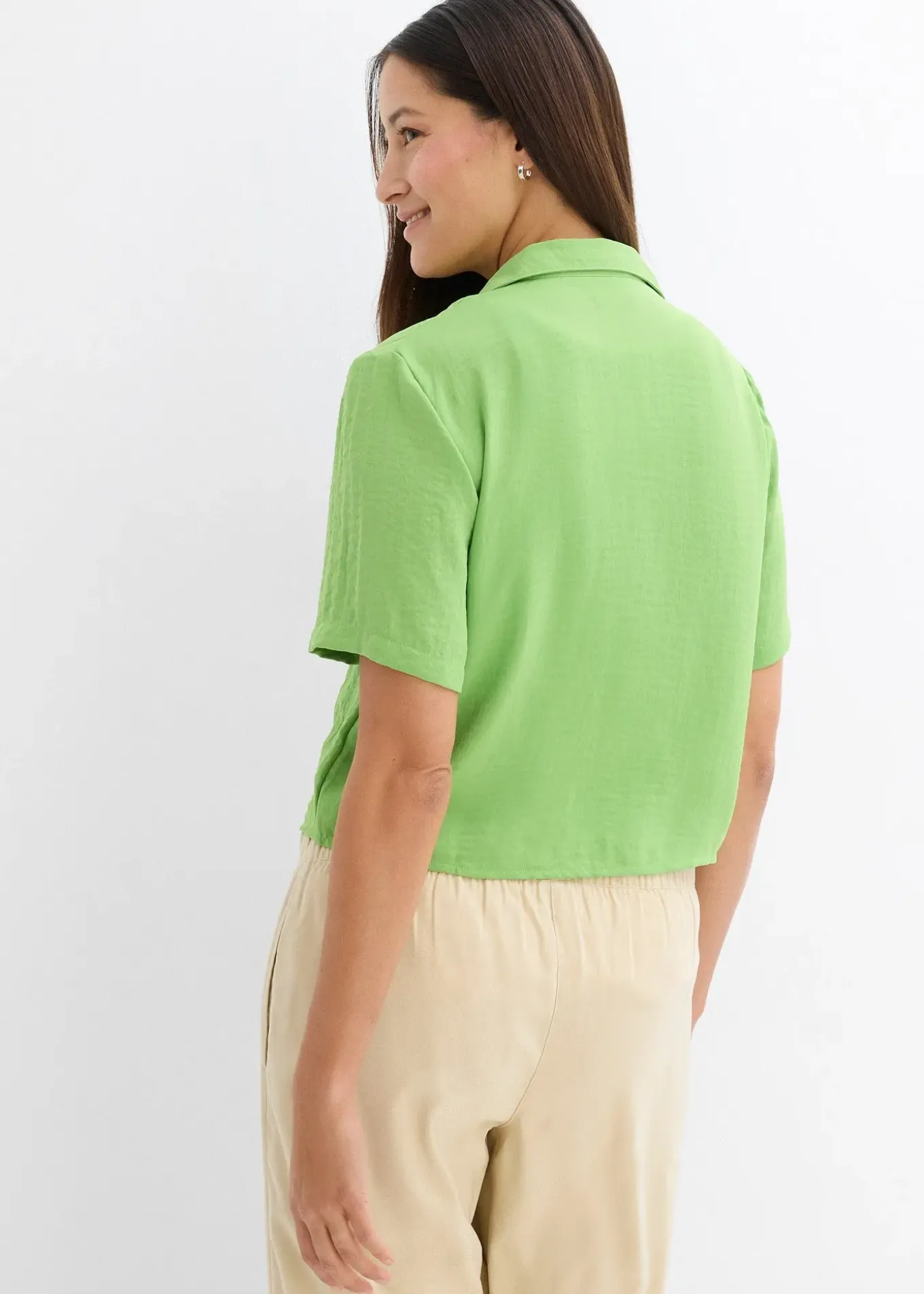 Chemisier court et boxy, demi-manches, col à revers et patte de boutonnage