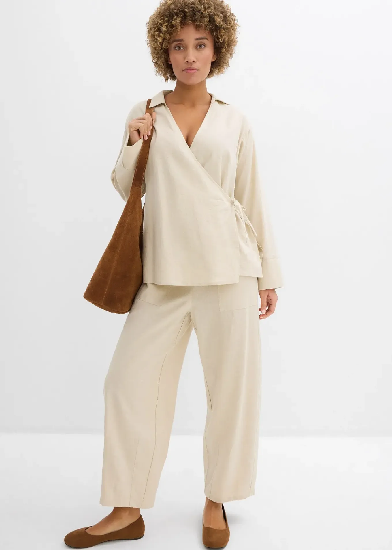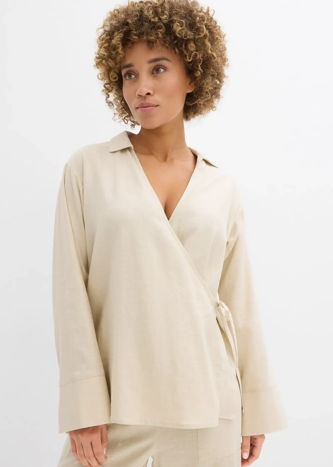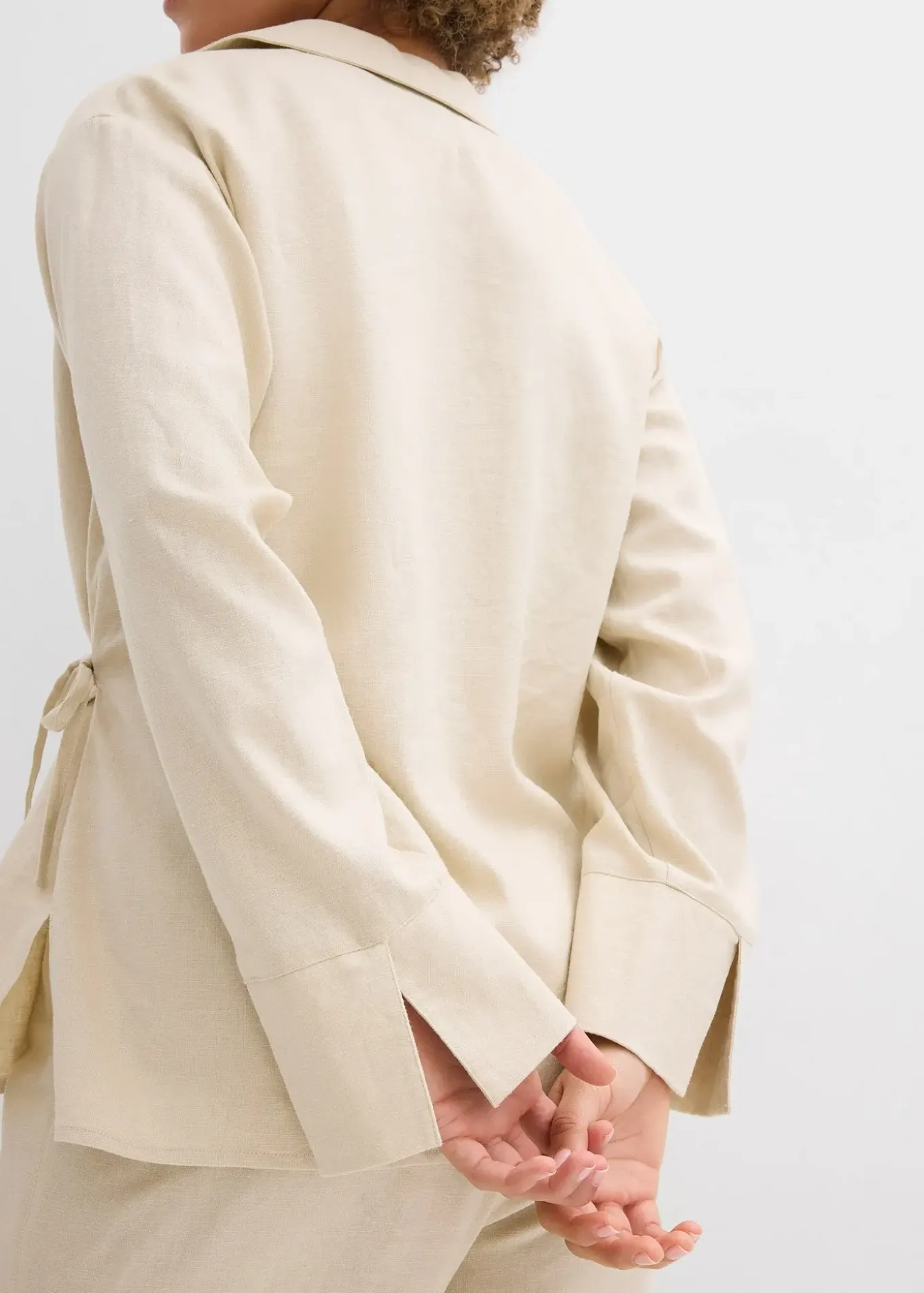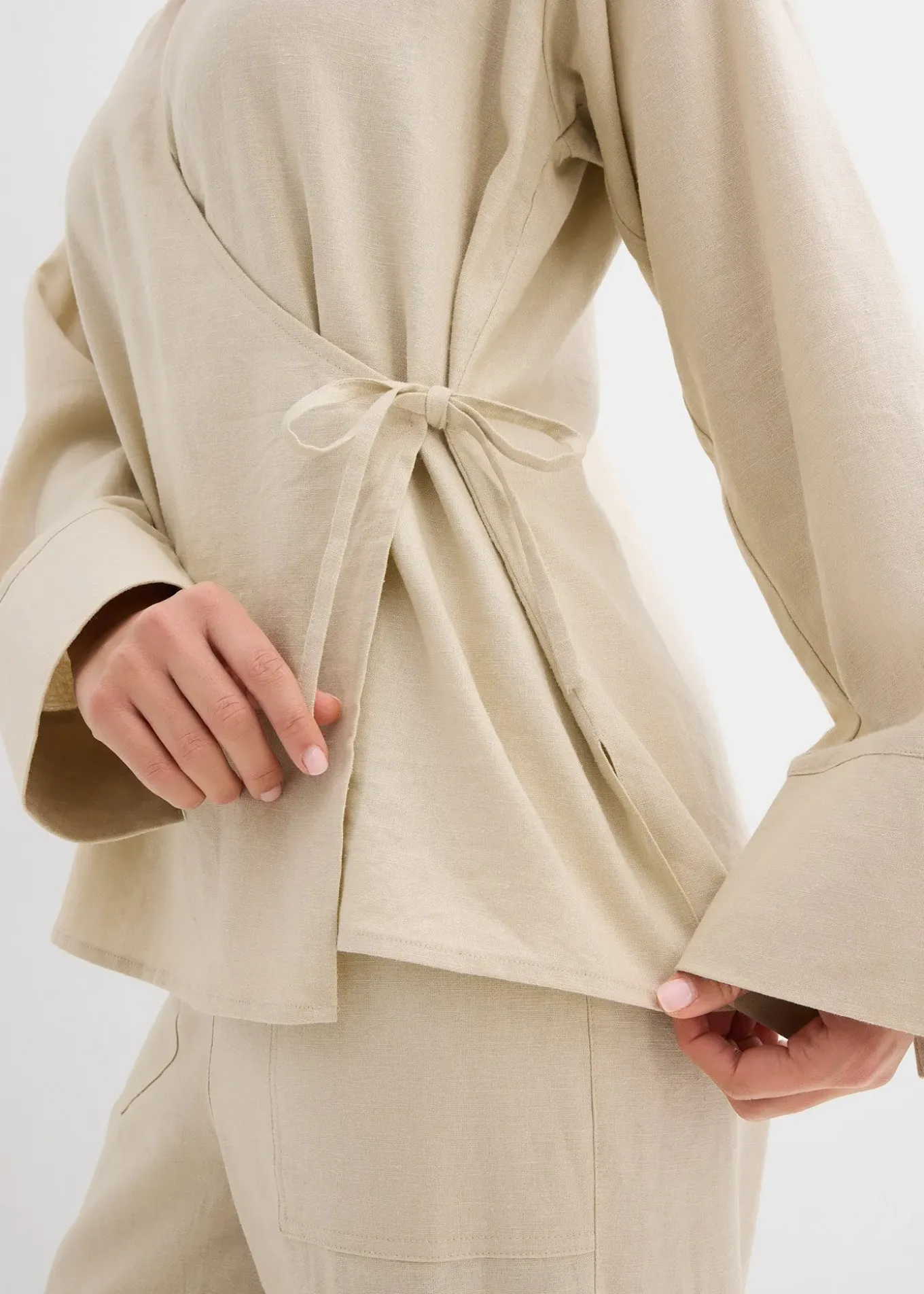 Chemisier cache-cœur en lin mélangé, coupe oversize légèrement évasée avec lien à nouer.