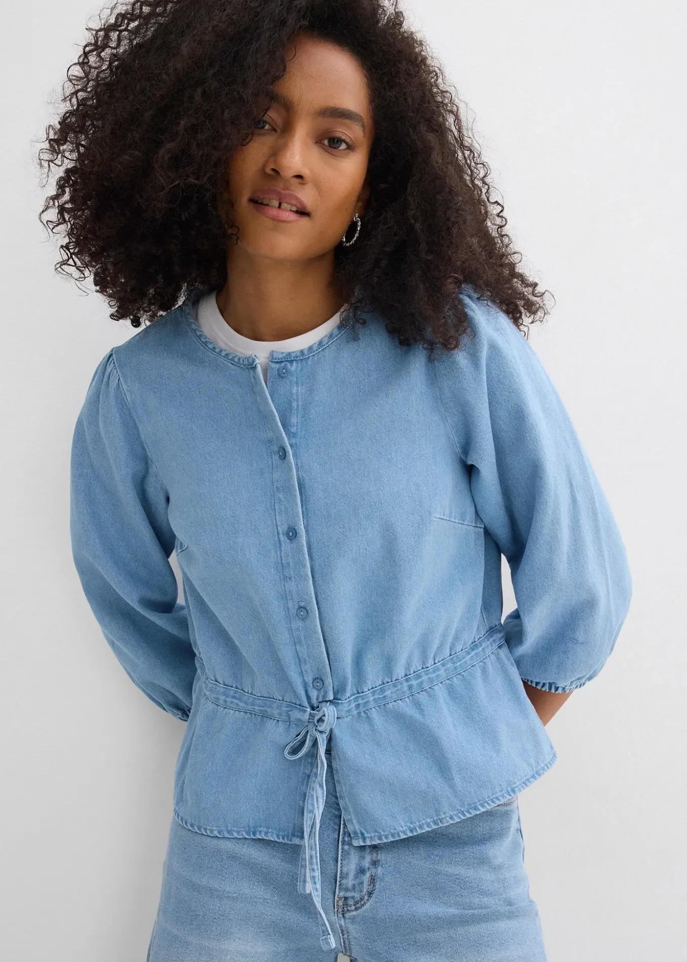 Chemisier en jean à manches bouffantes, coton