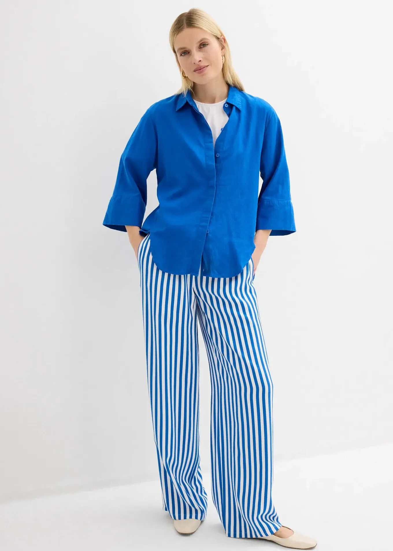 Chemisier large à coutures décalées vers l’avant, manches 3/4