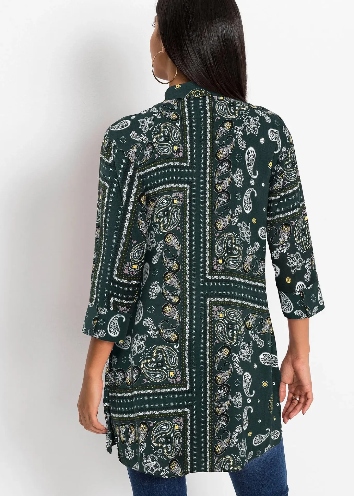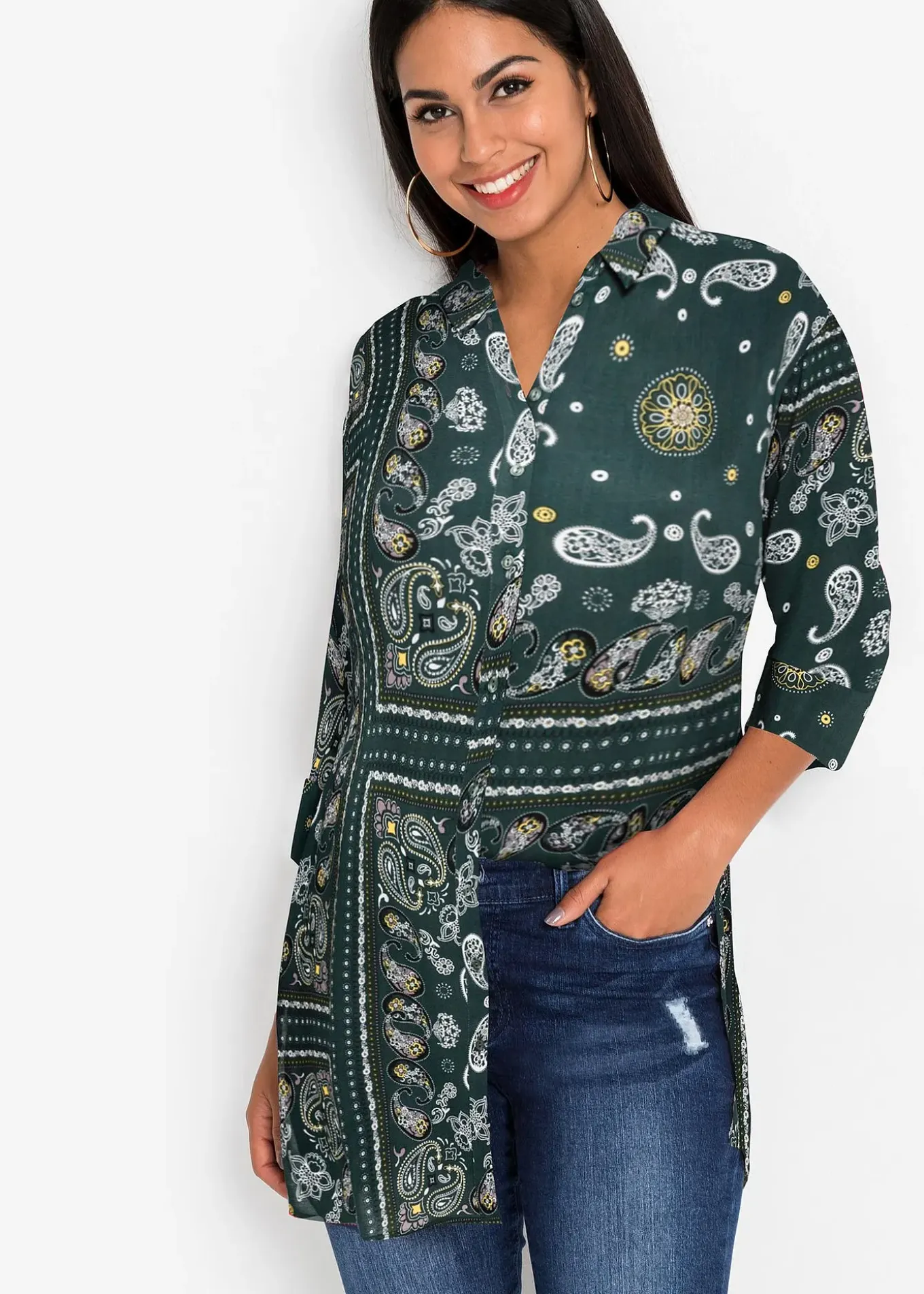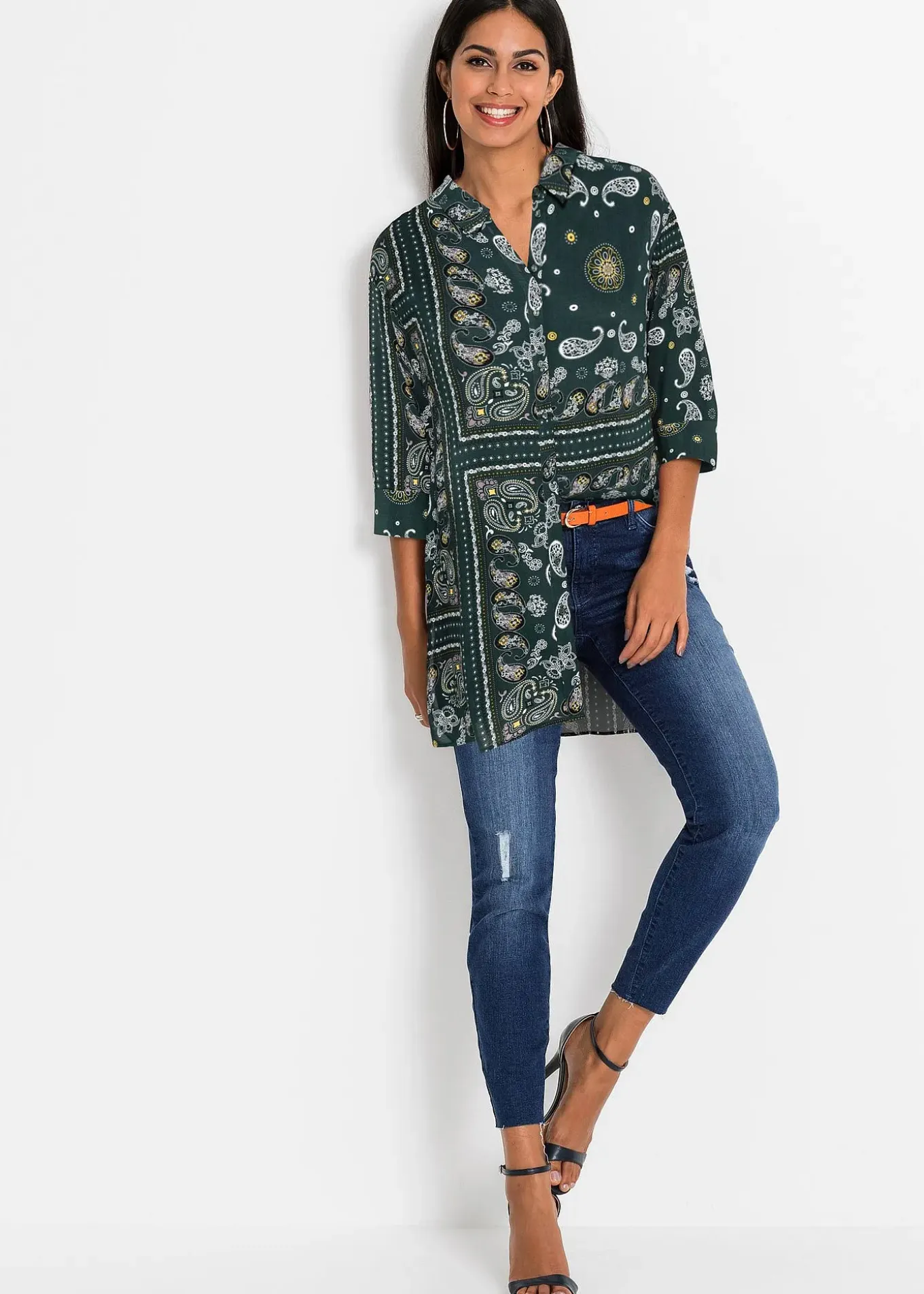 Chemisier long moderne de la marque BOYDFLIRT. Avec patte de boutonnage de haut en bas. Chaque pièce est unique. Long. env. 80 cm.
