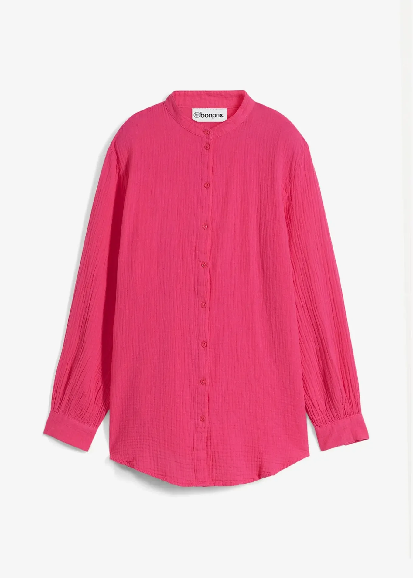 Chemisier décontracté et oversize en gaze de coton avec fentes latérales et patte de boutonnage
