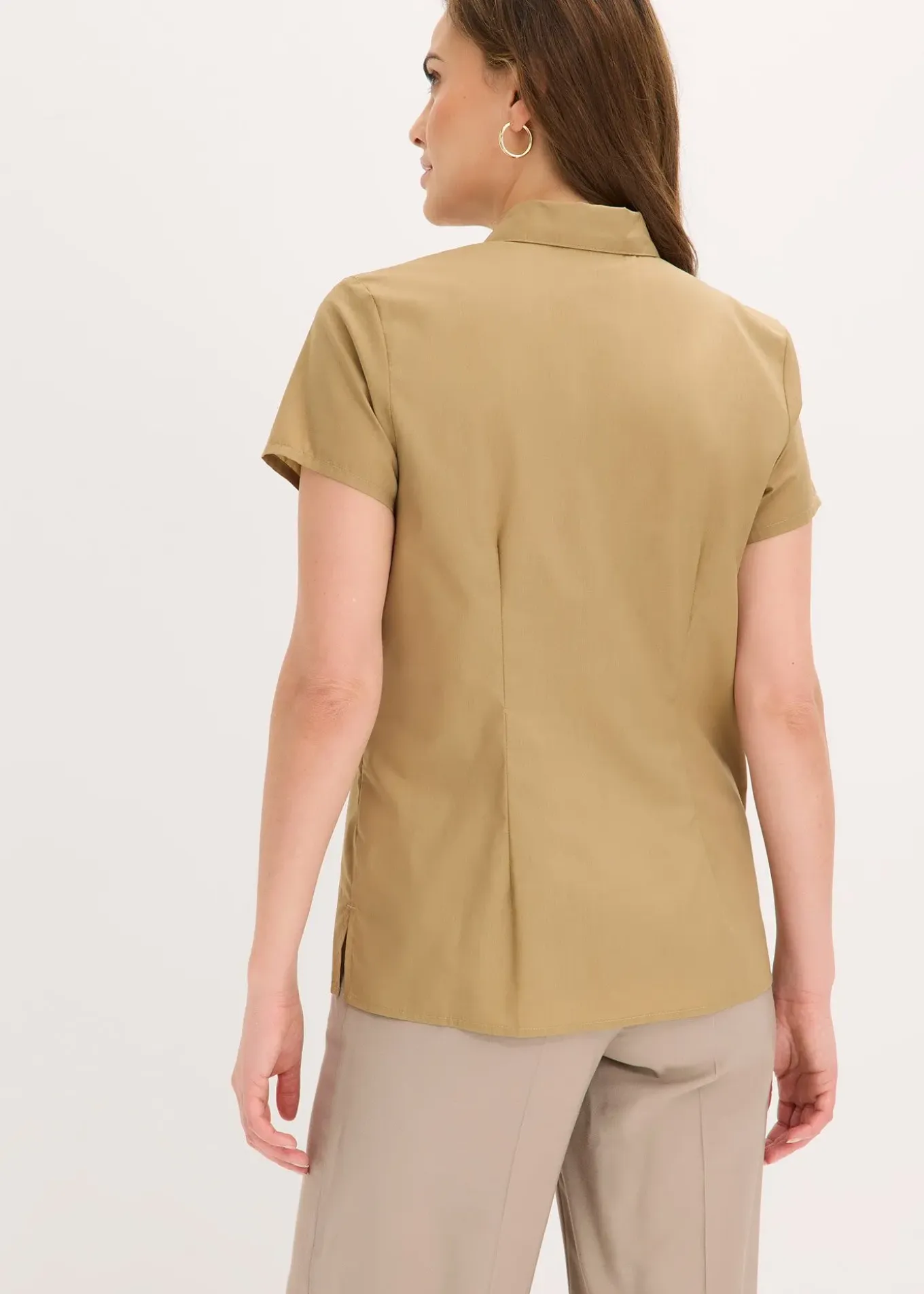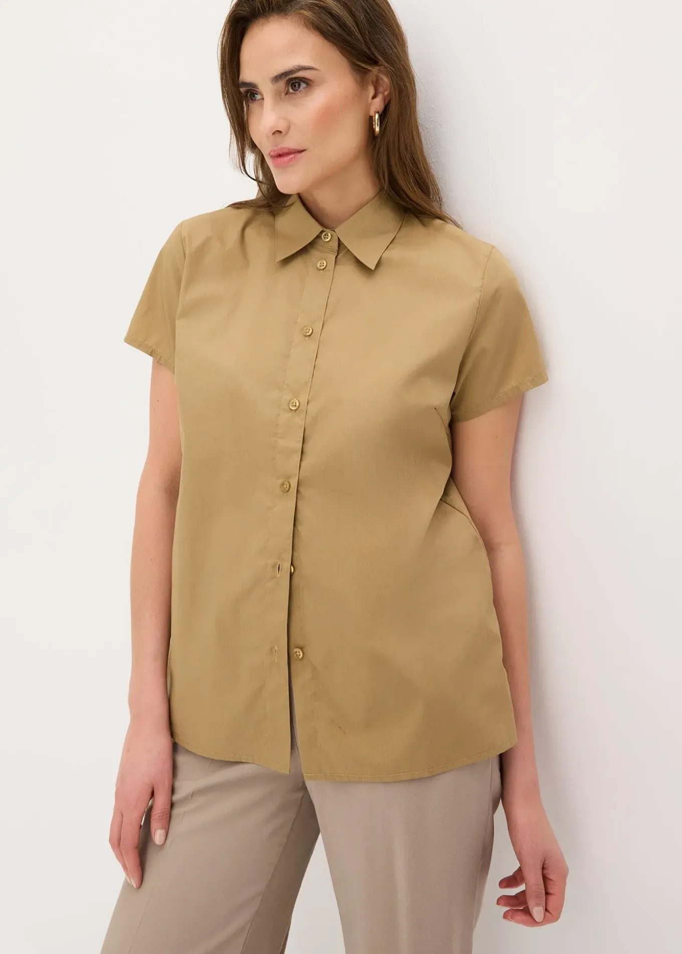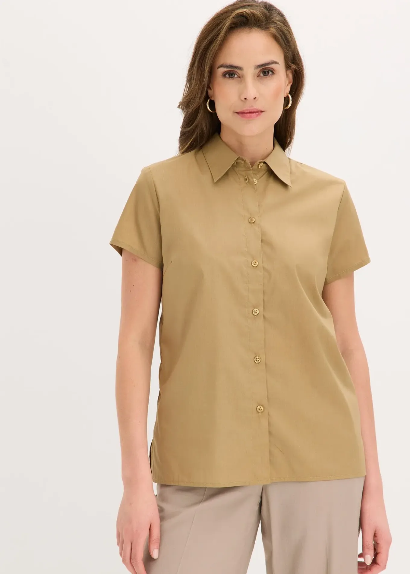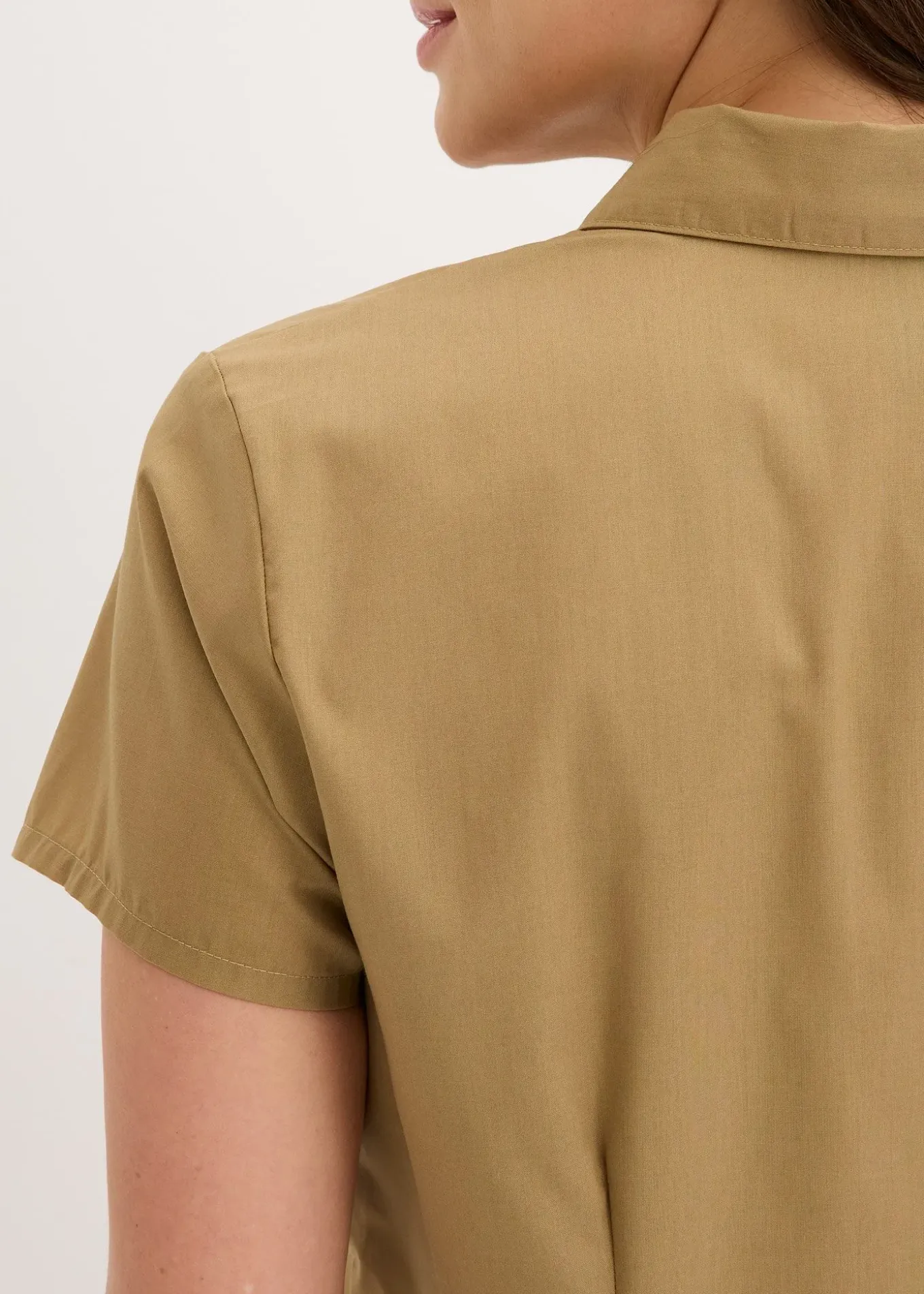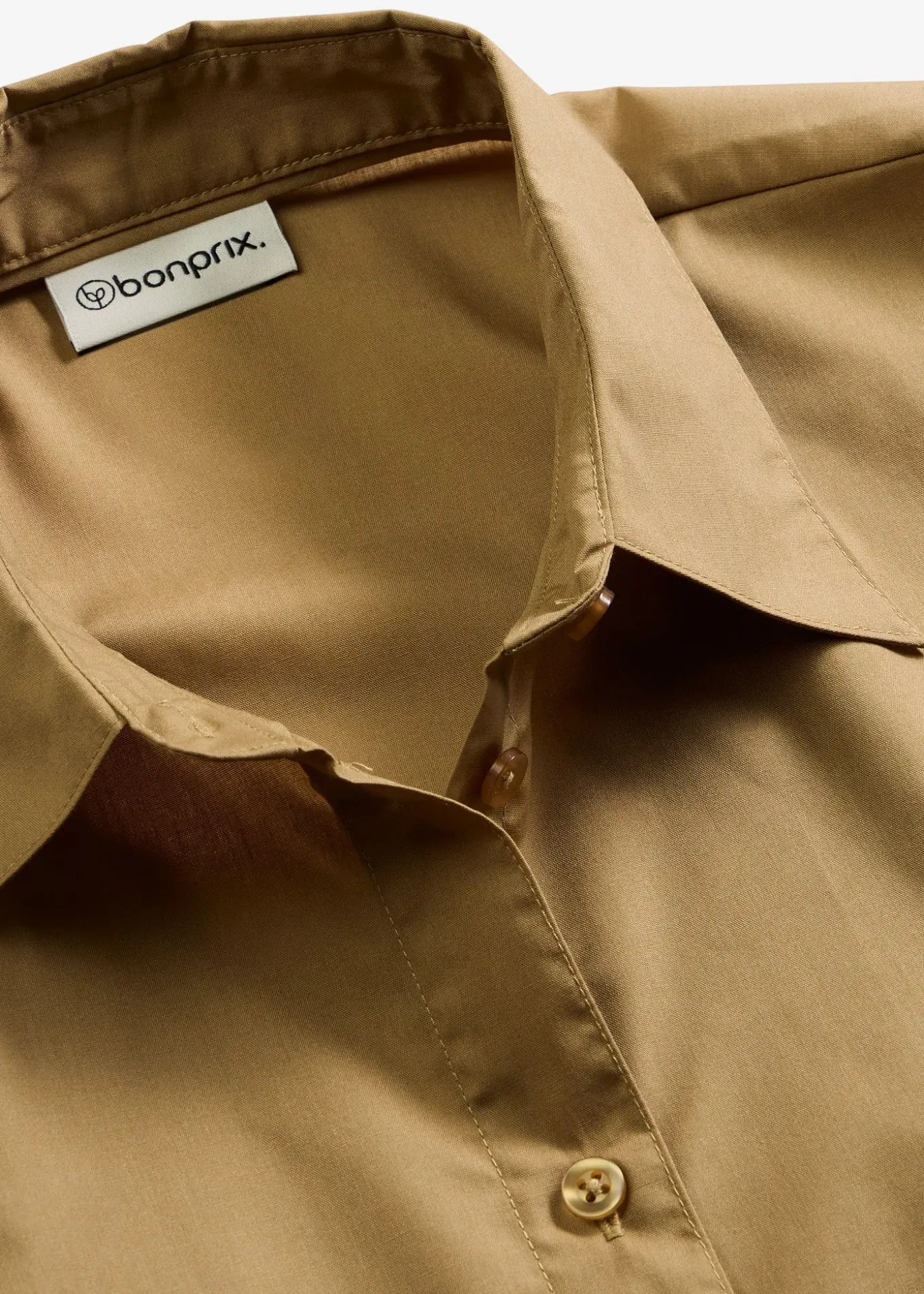 Avec patte de boutonnage et petites fentes latérales, coupe flatteuse, long. d’env. 65 cm à 74 cm, lavage machine.