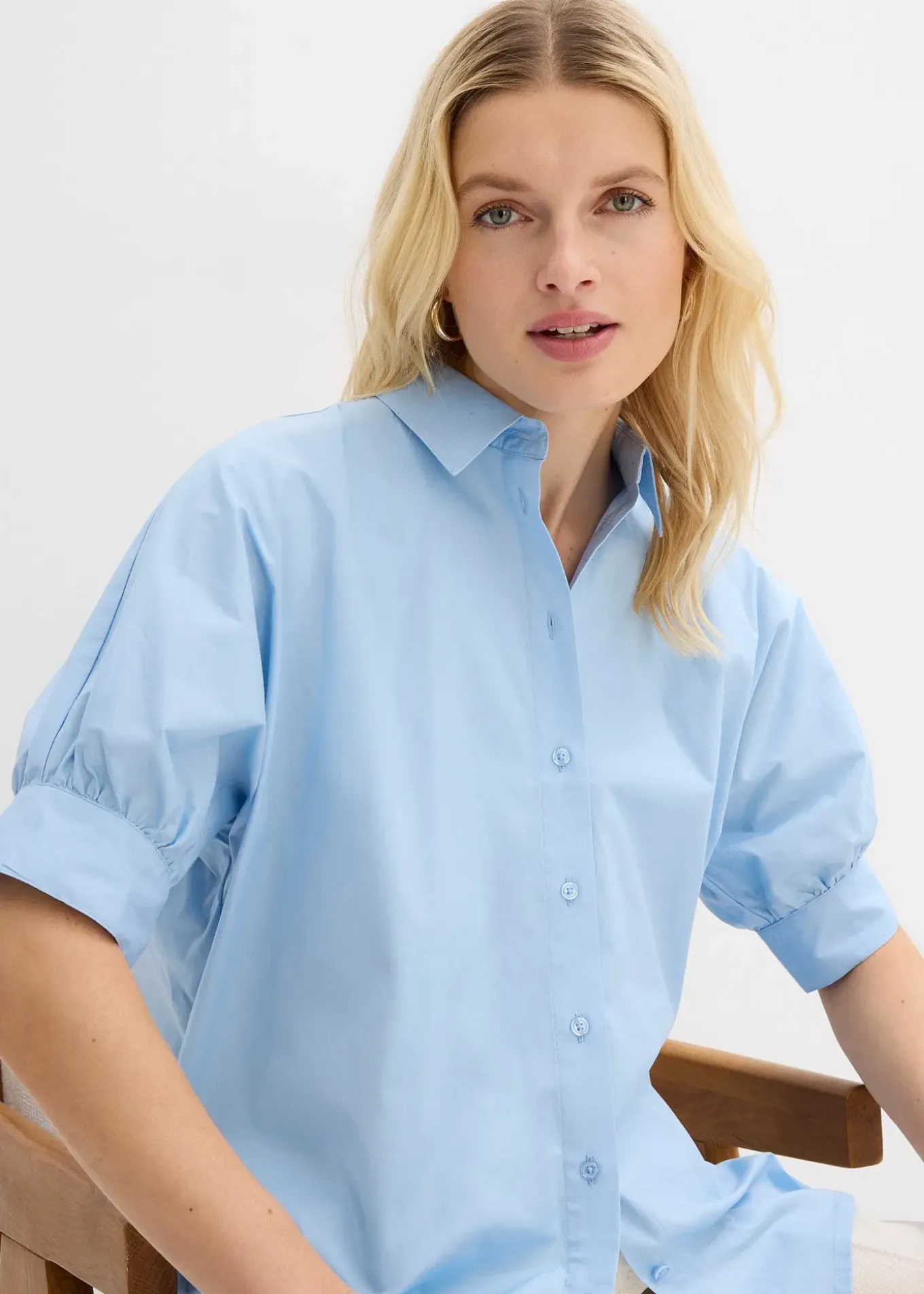 Chemisier oversize à manches bouffantes, boutonné devant