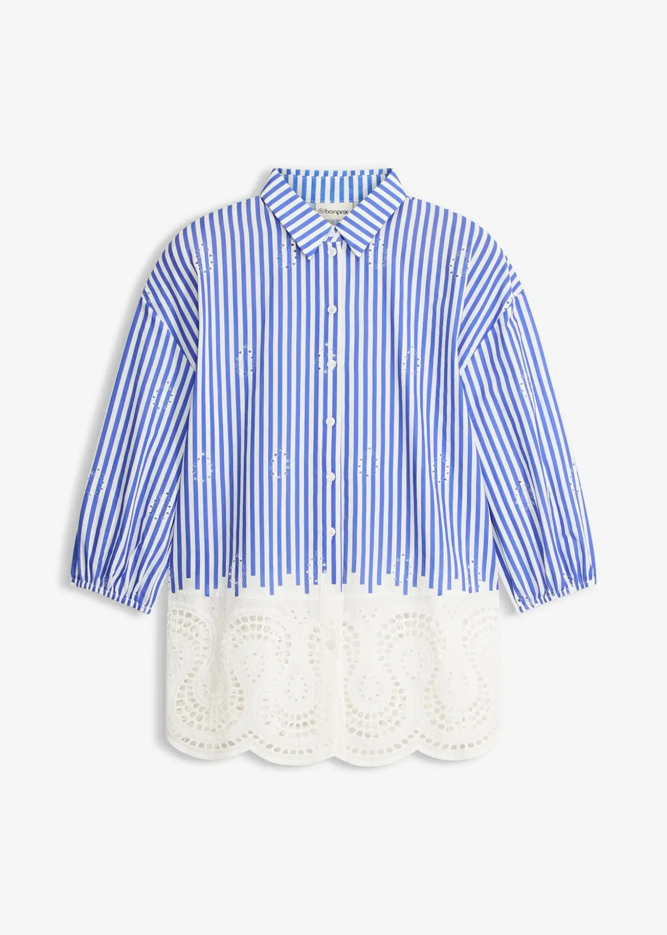 Chemisier oversize 100% coton avec broderie anglaise; boutonné devant