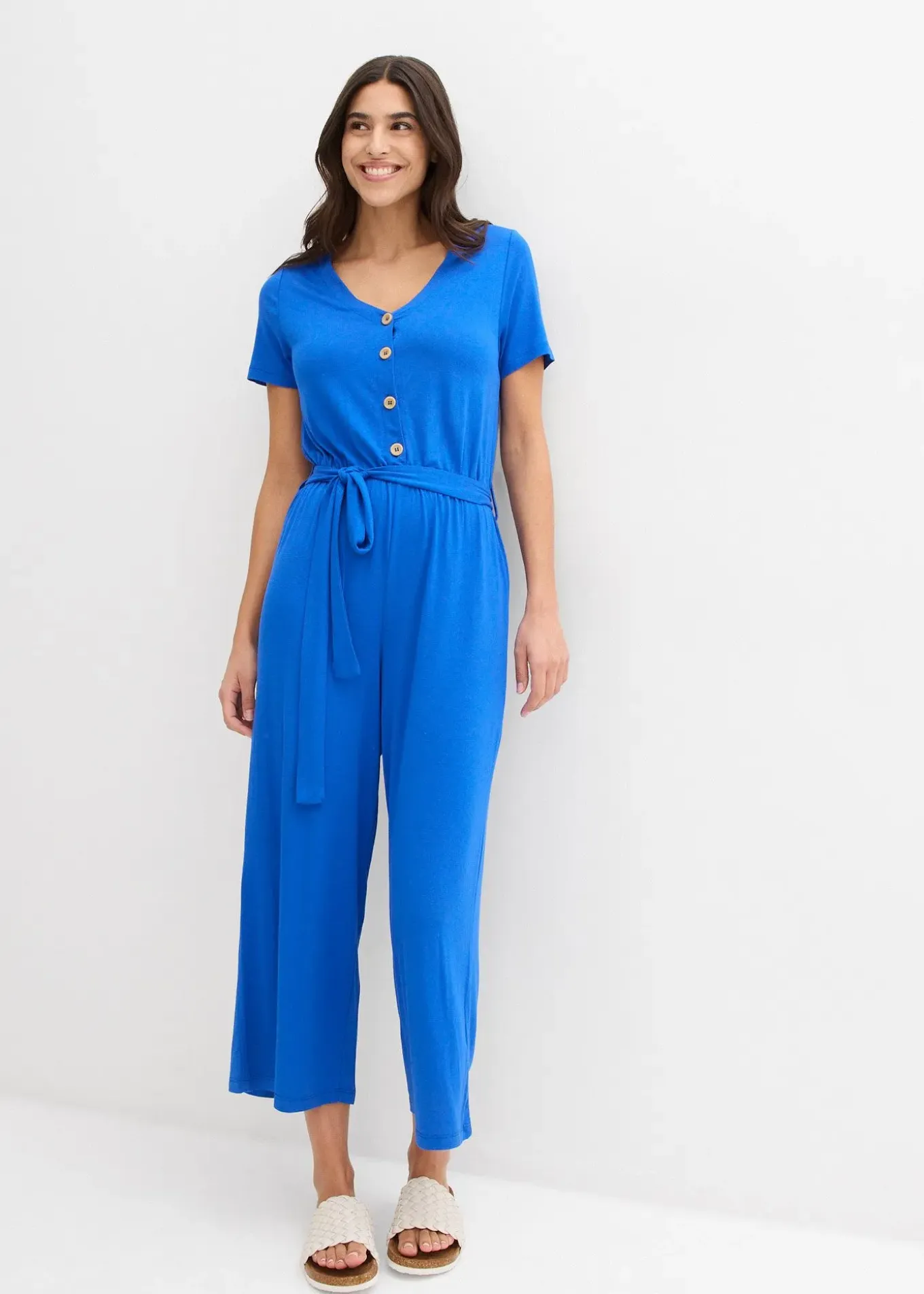 Combinaison 7/8 confortable avec haut boutonné et ceinture à nouer