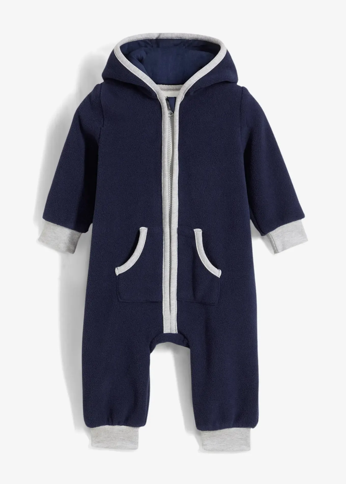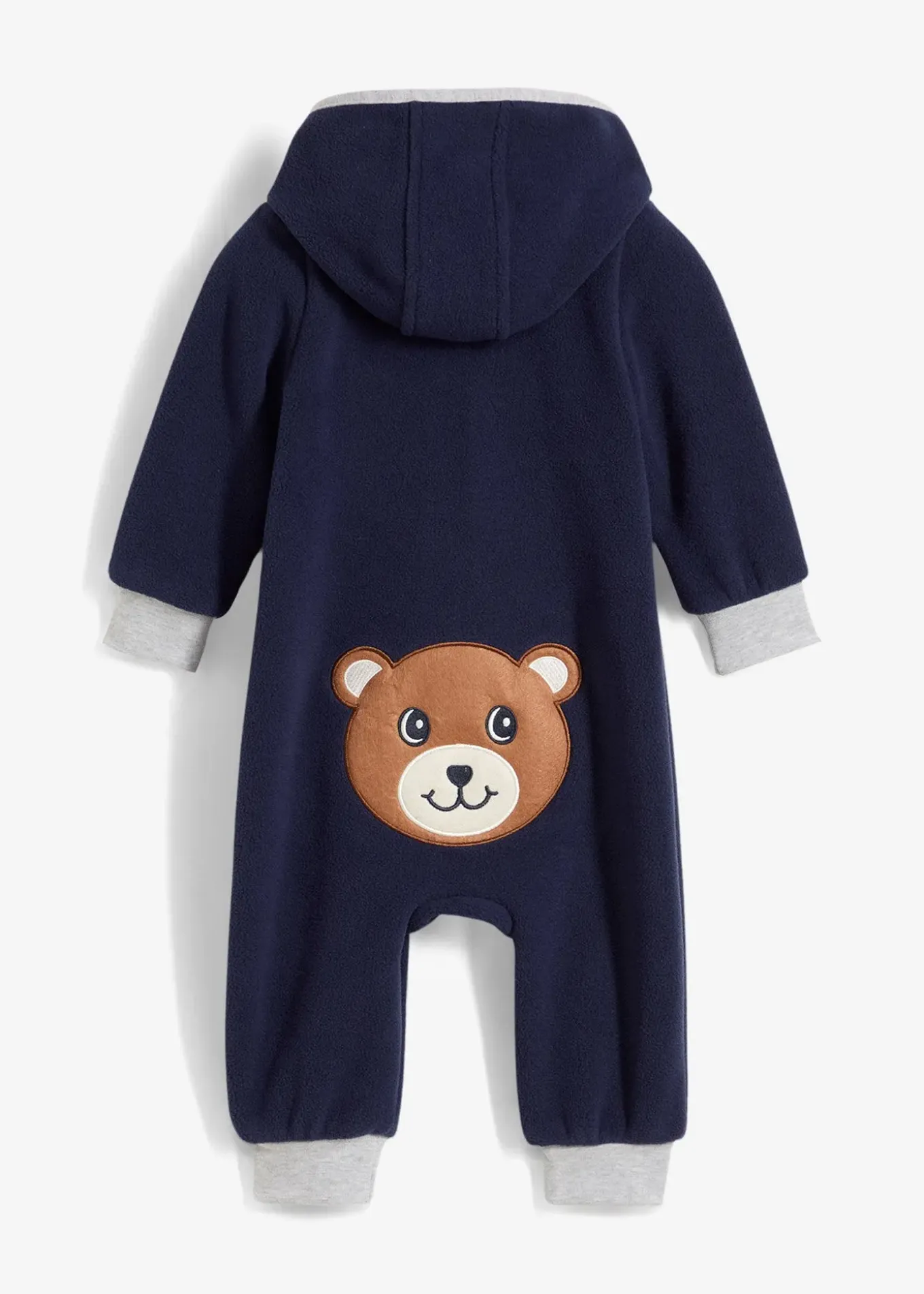 Combinaison bébé à capuche en polaire douce et de qualité, alliant confort et résistance. Cet adorable modèle est doté de finitions côtelées et de passepoils en gris contrastant pour une touche de fraîcheur. Jolie application ourson sur le derrière. Fermeture zippée facilitant l’enfilage.