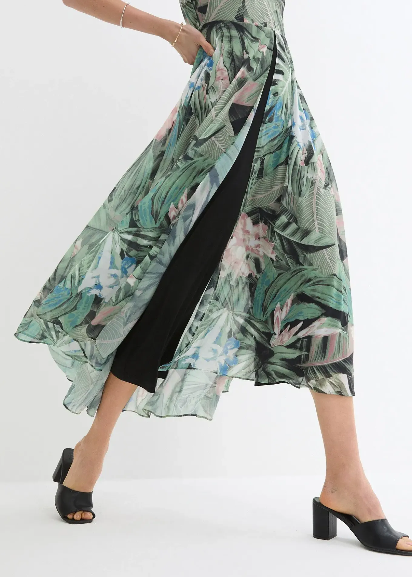 Combinaison en jersey avec long gilet léger en crêpe fluide
